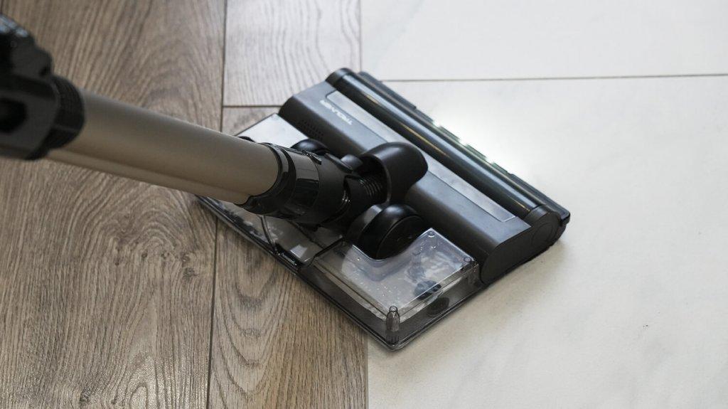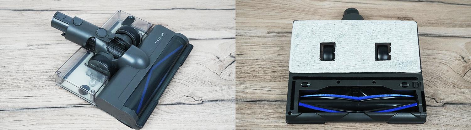 Taip pat parodysiu, kaip valyti grindis naudojant šį dulkių siurblį ir šlapio valymo šluostę. Pritvirtinkite rezervuarą prie pagrindinio antgalio ir naudokite „Trouver J40“ kaip šluostę. Taip pat galite siurbti dulkes šluostydami grindis, tačiau geriausia nepersistengti su siurbimo galia, kad vanduo nepatektų į dulkių konteinerį ir nesugadintų dulkių siurblio.