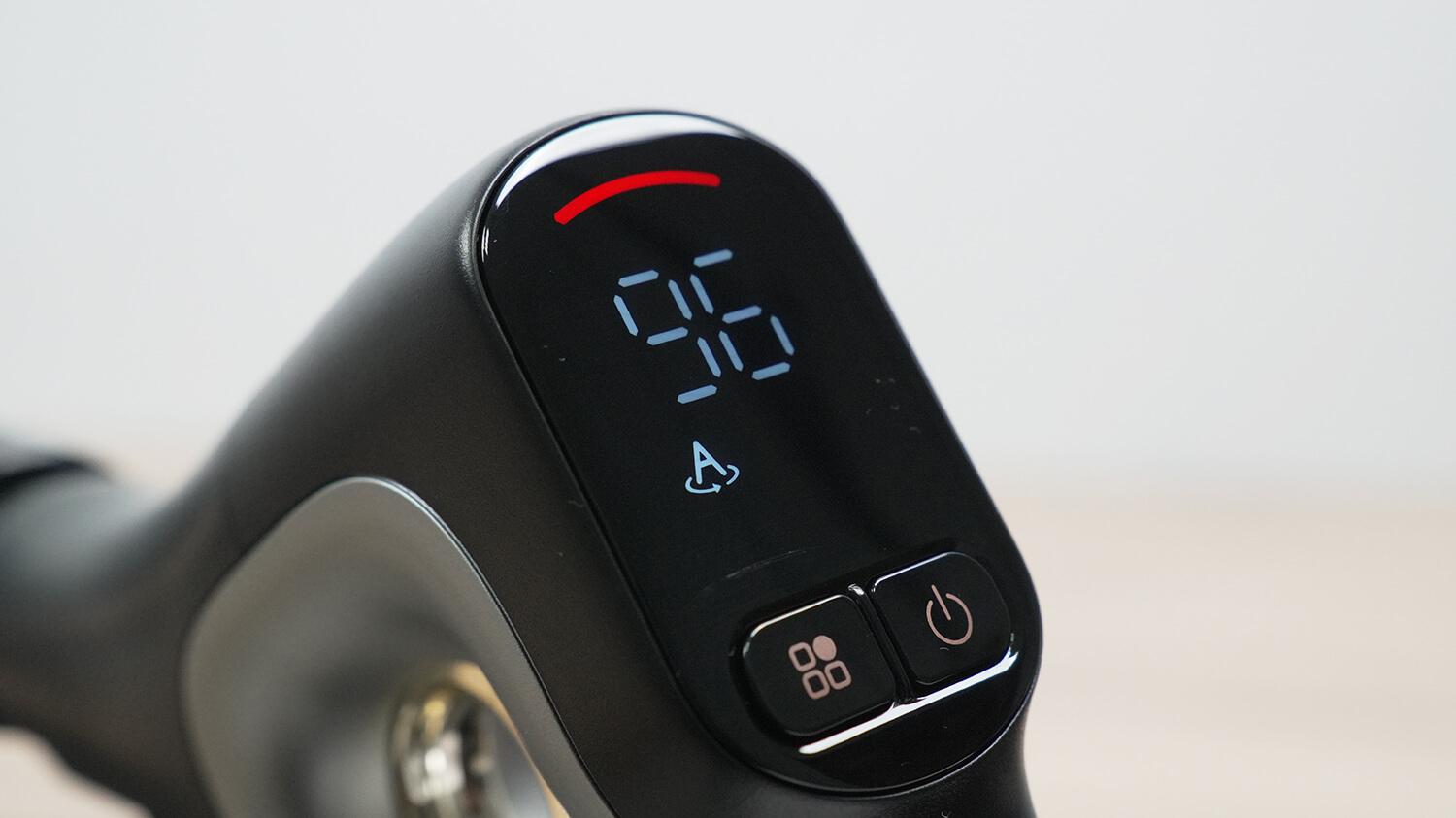Įrenginio gale, tiesiai po nykščiu, patogiai išdėstyti du mechaniniai valdymo mygtukai ir informatyvus ekranas. Galimi keturi veikimo režimai: automatinis, grindų valymas su plovikliu, skysto siurbimo ir maksimalus režimas.