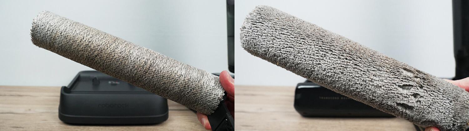 Galiausiai patikrinkime volelio savaiminio išsivalymo efektyvumą. Štai jo būklė po savaiminio išsivalymo, kurio metu pašalinami nešvarumai, kava ir kečupas. Po savaiminio išsivalymo volelis kruopščiai išvalytas ir gerai išpurentas.