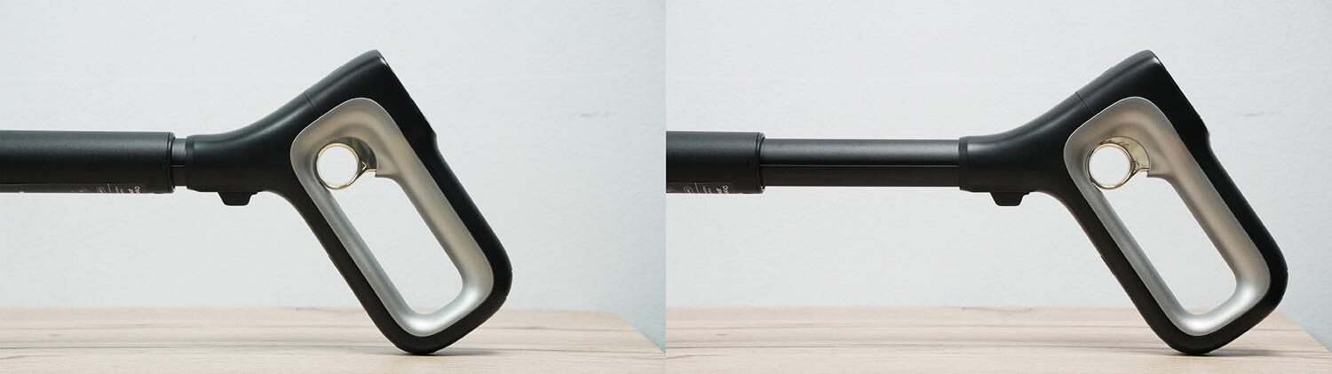 Taip pat galite reguliuoti dulkių siurblio aukštį pagal savo ūgį – nuo 120 iki 131 cm, ir už tai ypatinga padėka „Trouver“ inžinieriams.