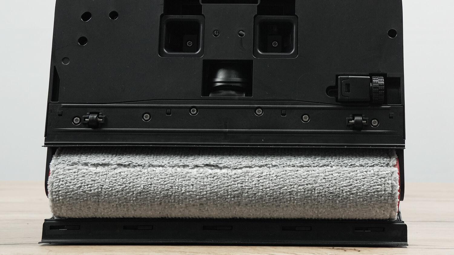 Pažvelkime atidžiau į „Trouver M50 Ultra“. Jis yra juodos, vaivorykštės spalvos. Jo konstrukcija sukurta įprastai: švarus vanduo tiekiamas į besisukantį volelį, o po to nuotekos surenkamos grandikliais ir įsiurbiamos į nešvaraus vandens baką.