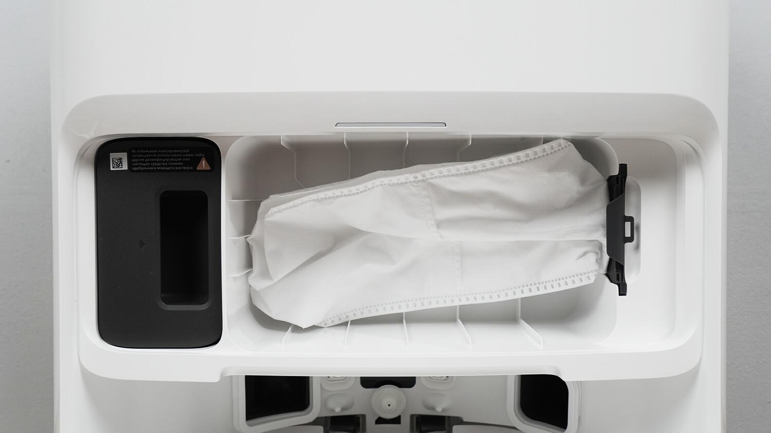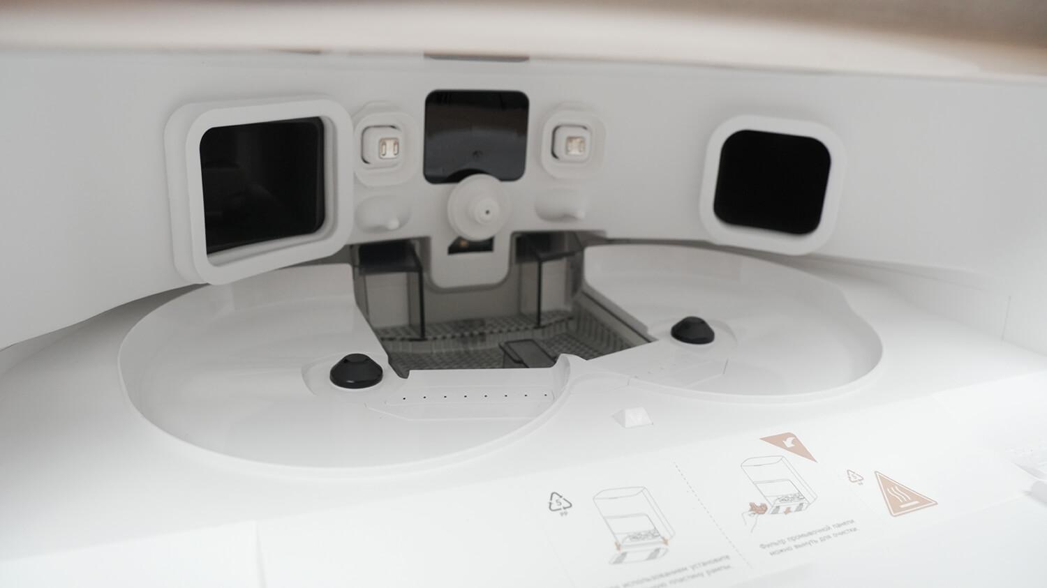 Roboto prieigos rampa yra nuimama, kaip ir stambus filtras dėkle. Tačiau paties dėklo nuimti negalima. Tarp ventiliacijos angų servetėlėms džiovinti dedama ultravioletinė lempa.