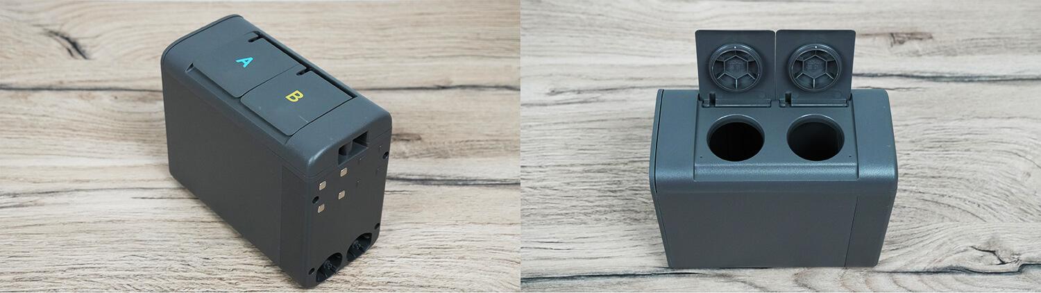 Pirmiausia apie ploviklio dozatorių. Tai patobulintas dizainas. Jame yra du skyriai: vienas įprastam ploviklio dozatoriui (400 ml) ir vienas specialiam naminių gyvūnėlių kvapo valikliui (200 ml).