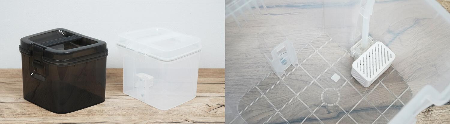 Vandens bakas tradiciškai yra po viršutiniu dangčiu. Nešvaraus vandens bako talpa yra 3,5 litro, o švaraus vandens – 4 litrai. Švaraus vandens bake įrengta kalkių nuosėdų slopinimo sistema.