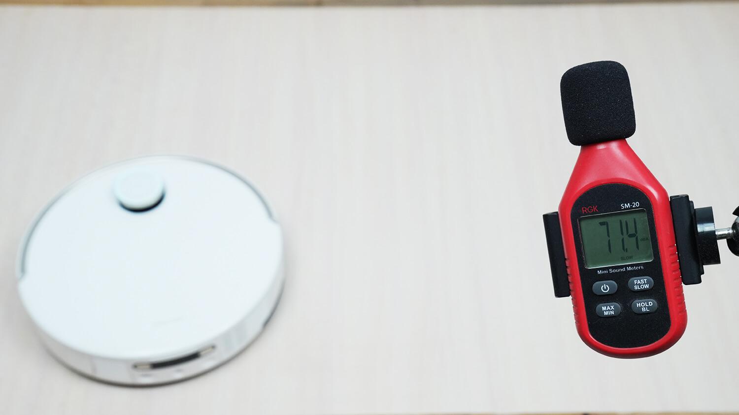 Kalbant apie triukšmo lygį, jis svyruoja nuo 58,5 iki 73,5 dB, priklausomai nuo pasirinkto darbo režimo. Triukšmo lygis yra padidėjęs, tačiau svarbu atkreipti dėmesį, kad robotas yra galingas, ir šie parametrai yra tarpusavyje susiję.