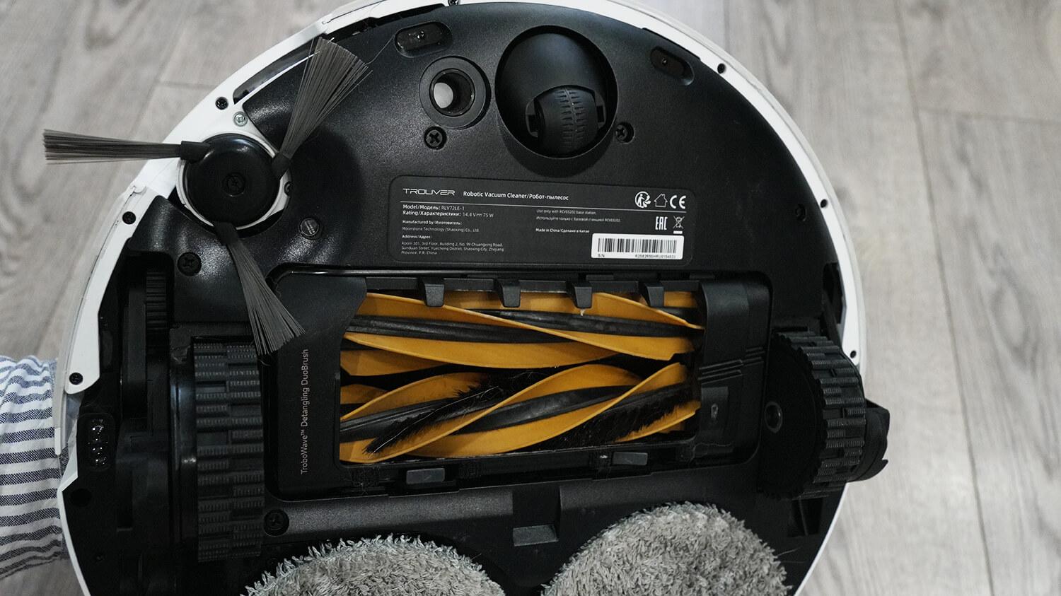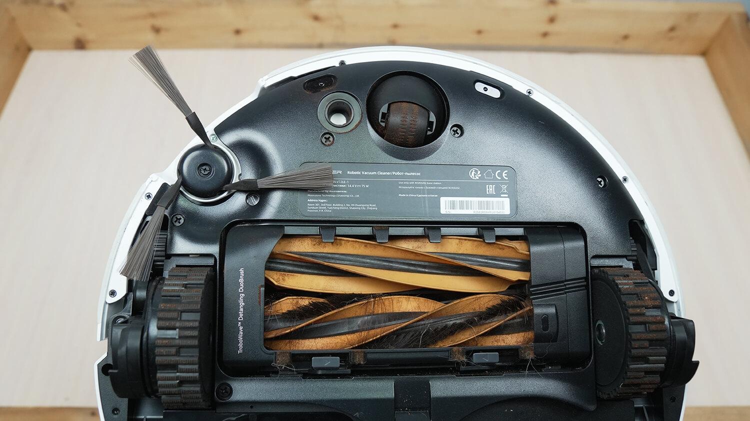 Turbošepečių savaiminį valymą išbandžiau ant grindų paskleisdamas įvairaus ilgio plaukelius. Robotas juos surinko, ir rezultatai apskritai buvo geri – galinis šerelių-žiedlapių šepetys išsivalė pats, bet šoniniame šepetyje susipainiojo keli plaukai. Taigi, plaukų šalinimo sistema veikia, bet nėra tobula.