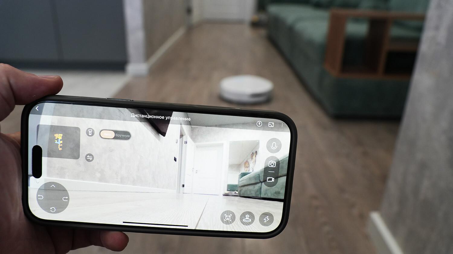 Taip pat buvo išbandytas minimalus aukštis, kuriuo robotas gali judėti. Po baldais sukūriau 9 centimetrų tarpą. Pirmiausia robotas išvalė visą prieinamą plotą pakeltu lidaru, tada automatiškai atpažino tarpą, į kurį gali fiziškai įeiti, nuleido lidarą ir įvažiavo į jį. Taip pat galite rankiniu būdu žemėlapyje apibrėžti zonas, kuriose robotas-dulkių siurblys turėtų slėpti lidarą. Tai privalumas!