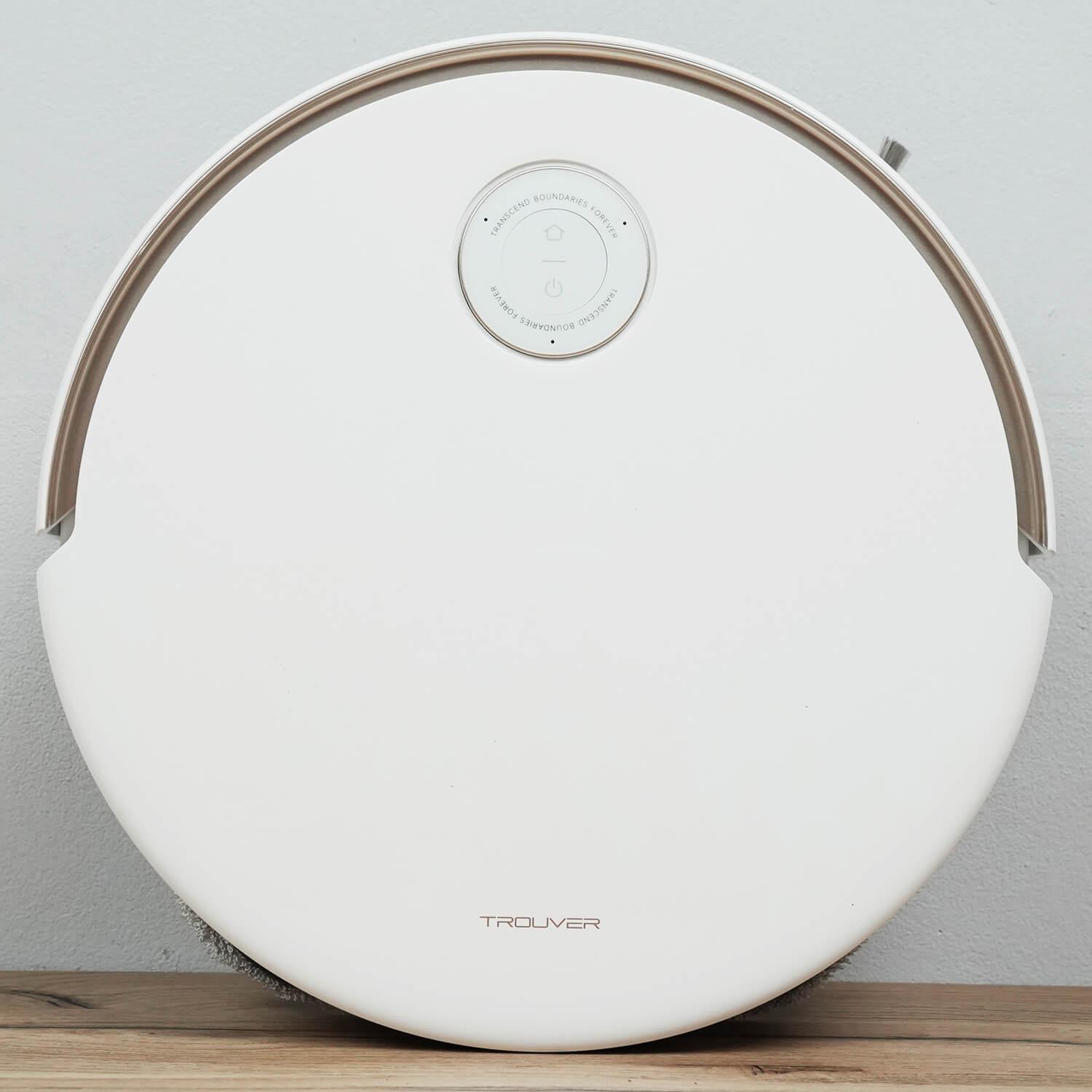 Dabar pažvelkime į „Trouver V50 Ultra Complete“ dizainą. Pradėkime nuo paties roboto dulkių siurblio. Jis apvalus ir baltos spalvos.