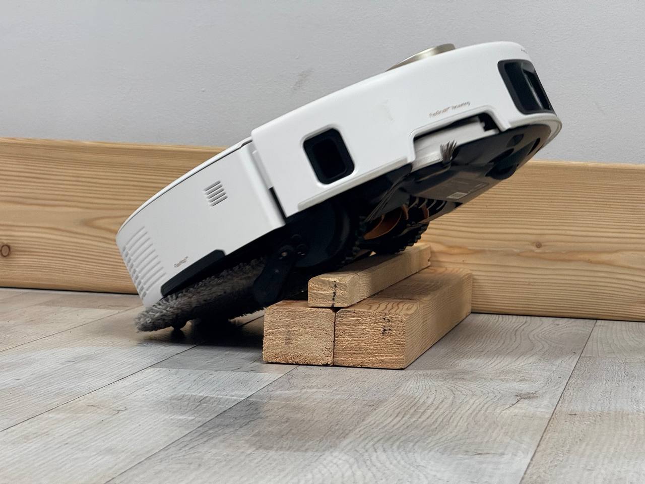 Pradėkime nuo 2 cm slenksčio. Jis jį kirto be problemų. 3 cm slenkstis šiam robotui taip pat nėra problema. „Trouver V50 Ultra Complete“ įveikė 4 cm slenkstį. Ir jam netgi pavyko peržengti 5 cm slenkstį lygiai su žeme!