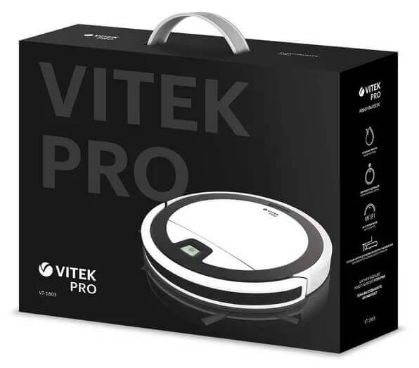VITEK VT-1803 robotas dulkių siurblys skirtas įvairių grindų tipų, įskaitant parketą, medieną, laminatą, plyteles ir kt., sausam ir šlapiam valymui. Šis rusiško prekės ženklo modelis buvo išleistas 2019 m. Vidutinė roboto dulkių siurblio kaina yra apie 130 eurų, nors rašymo metu gamintojo svetainėje buvo nurodyta 245,90 euro kaina, tai yra dvigubai daugiau. Robotas aprūpintas 2200 mAh ličio baterija, kuri užtikrina dviejų valandų veikimo laiką. Įrenginį galima valdyti nuotolinio valdymo pultu arba specialia išmaniojo telefono programėle. Šlapias valymas apima grindų valymą drėgnu, pūkuotu skudurėliu. Kitos VITEK VT-1803 savybės ir funkcijos aptariamos toliau pateiktoje apžvalgoje.