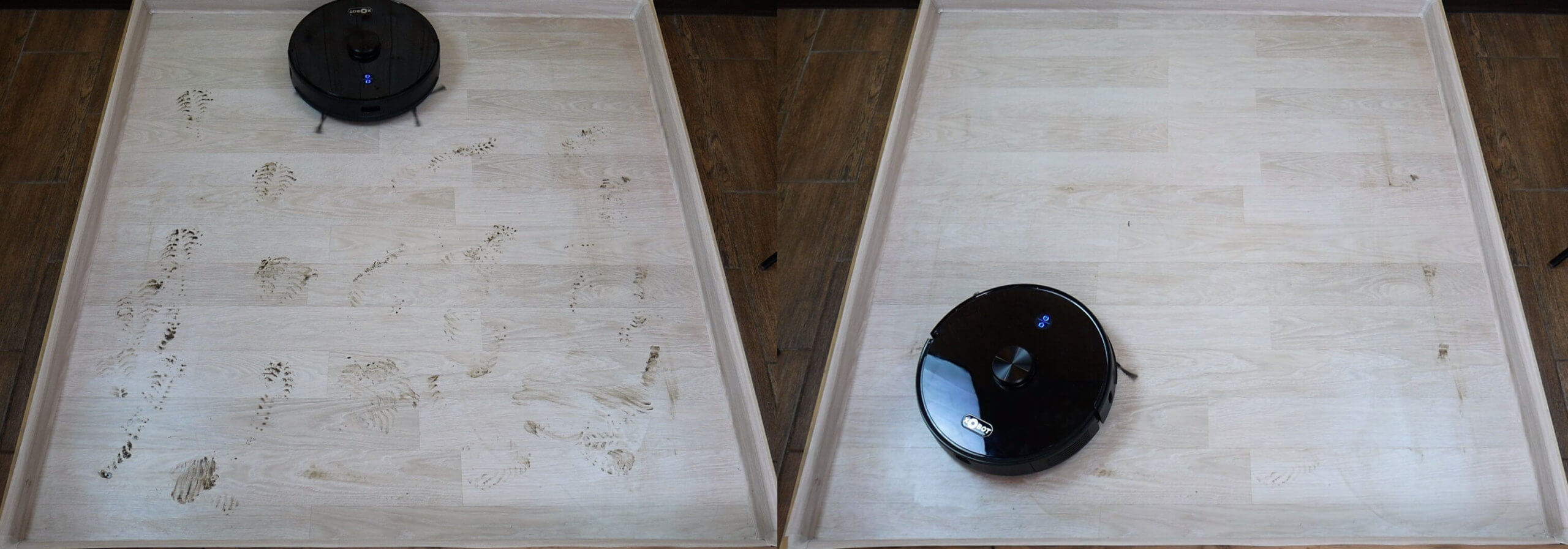 Tačiau nešvarumų šalinimo našumas nėra labai geras, nes šluostė nepakankamai tvirtai prispaudžia prie grindų. Todėl „Xbot L7 Pro“ negali pašalinti pridžiūvusių nešvarumų.