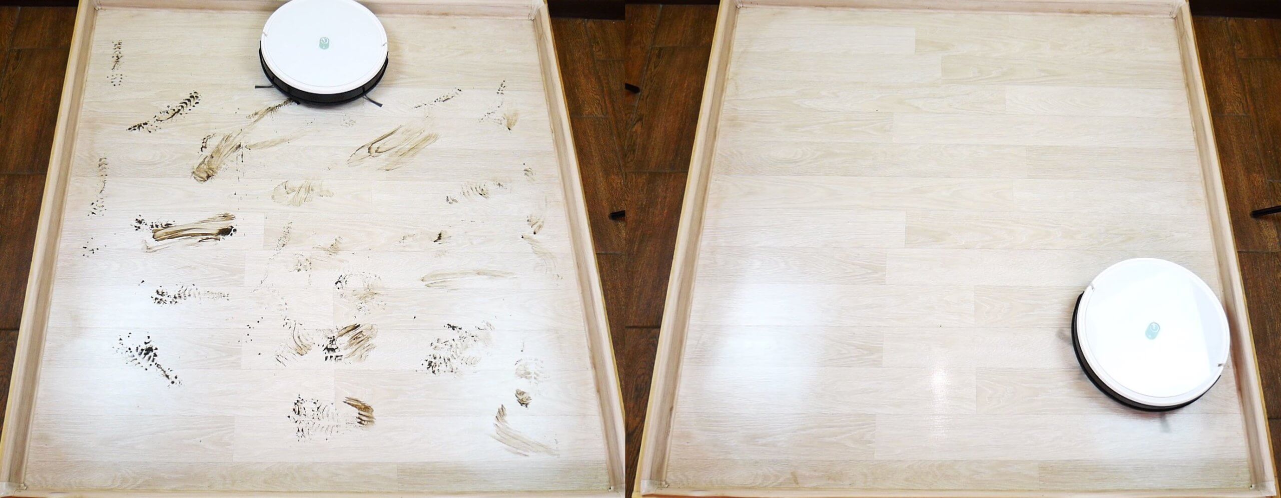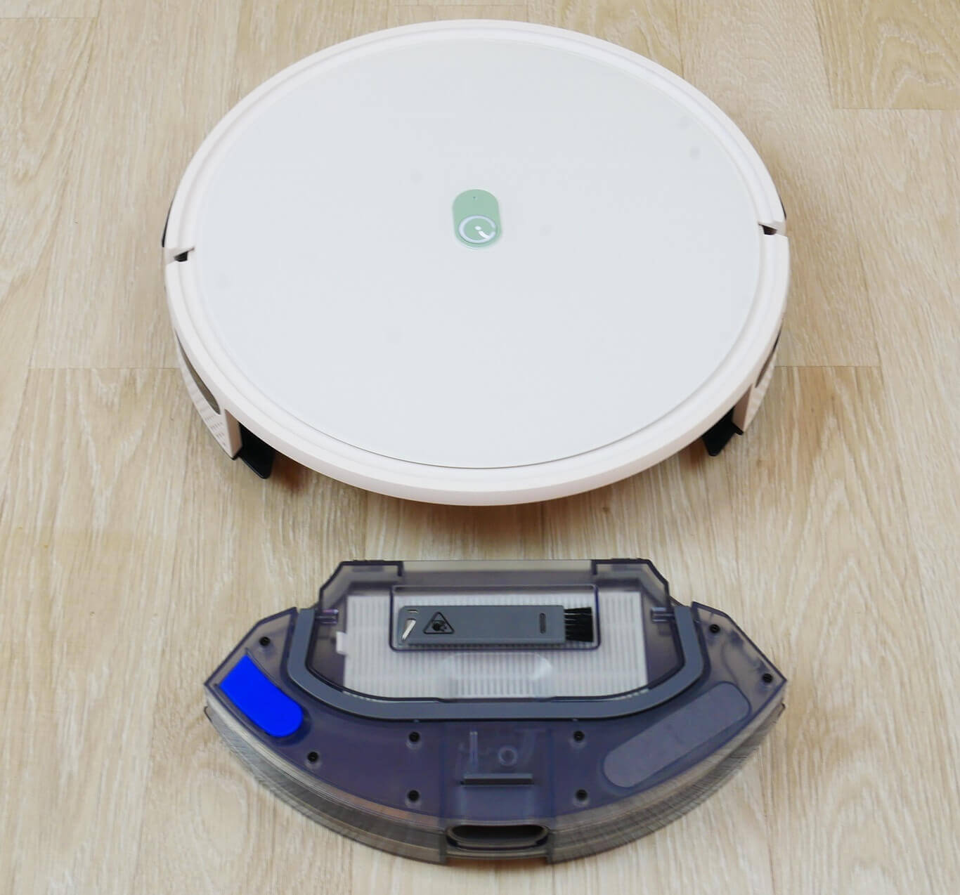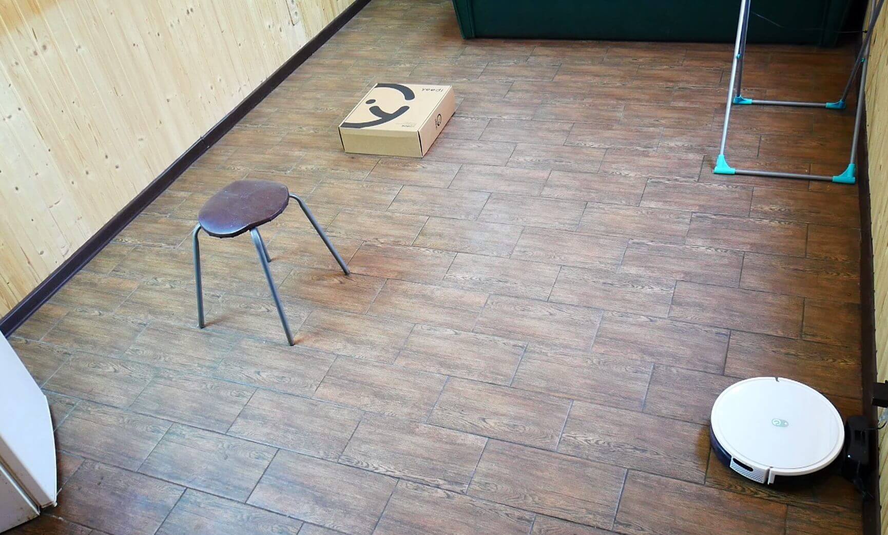 Kalbant apie plytelių valymą šlapiu būdu, „Yeedi K650“ gerai sudrėkina grindis, o baigęs valymo ciklą robotas pats grįždavo į savo bazę. Grindys buvo praktiškai švarios.