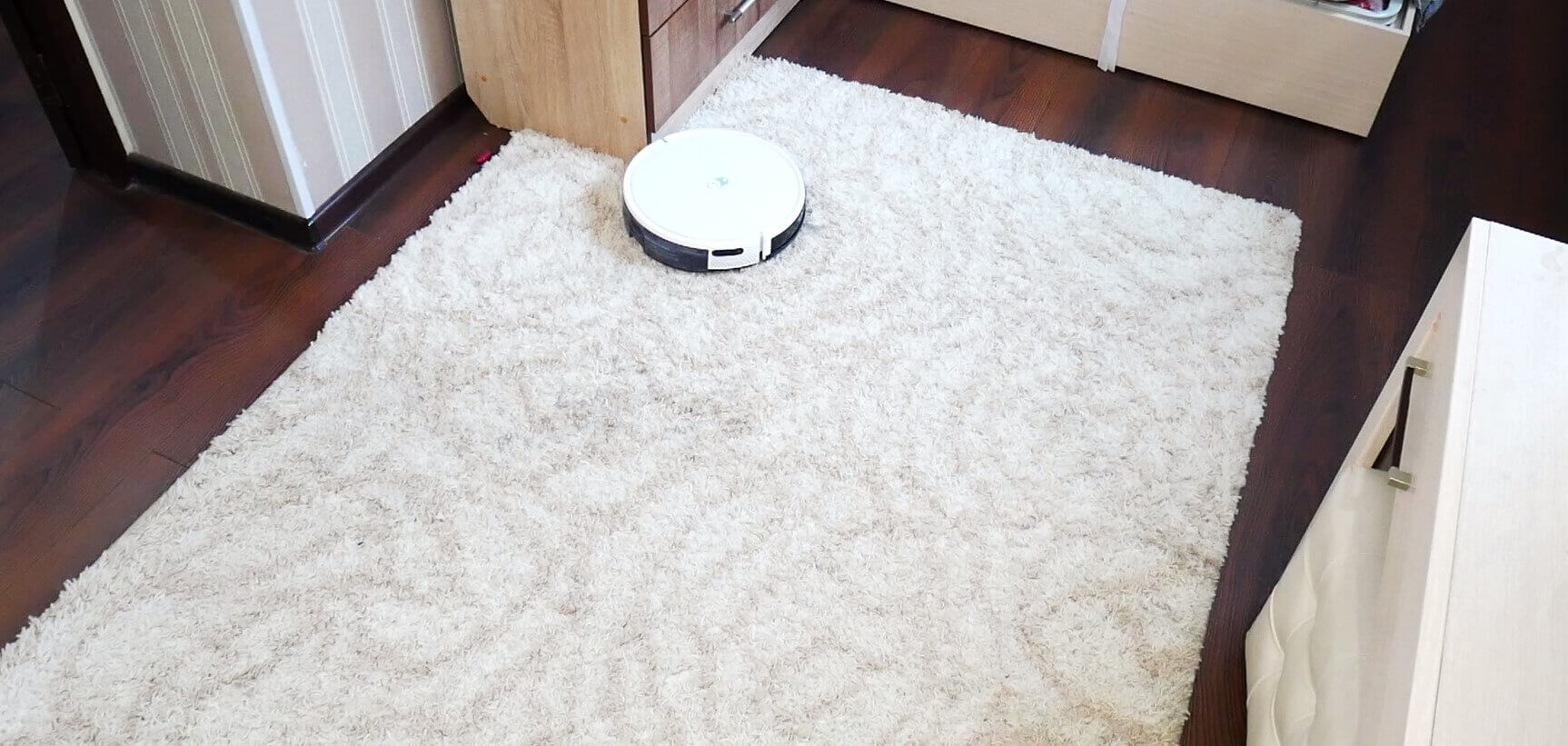 Tačiau robotas atsargiai elgiasi su tamsiais paviršiais, atpažįsta juos pagal aukščio skirtumus. Svarbu tai turėti omenyje.