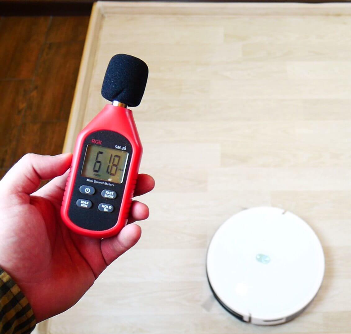 Galiausiai, paskutinis bandymas buvo triukšmo lygio matavimas skirtingais režimais. Įprastu režimu triukšmo lygis siekė 62,5 dB. Maksimaliu režimu jis siekė 67 dB. Maksimaliu+ režimu didžiausias triukšmo lygis buvo 67,4 dB. Robotas yra triukšmingas, bet taip pat galingas, ir tai svarbu suprasti.