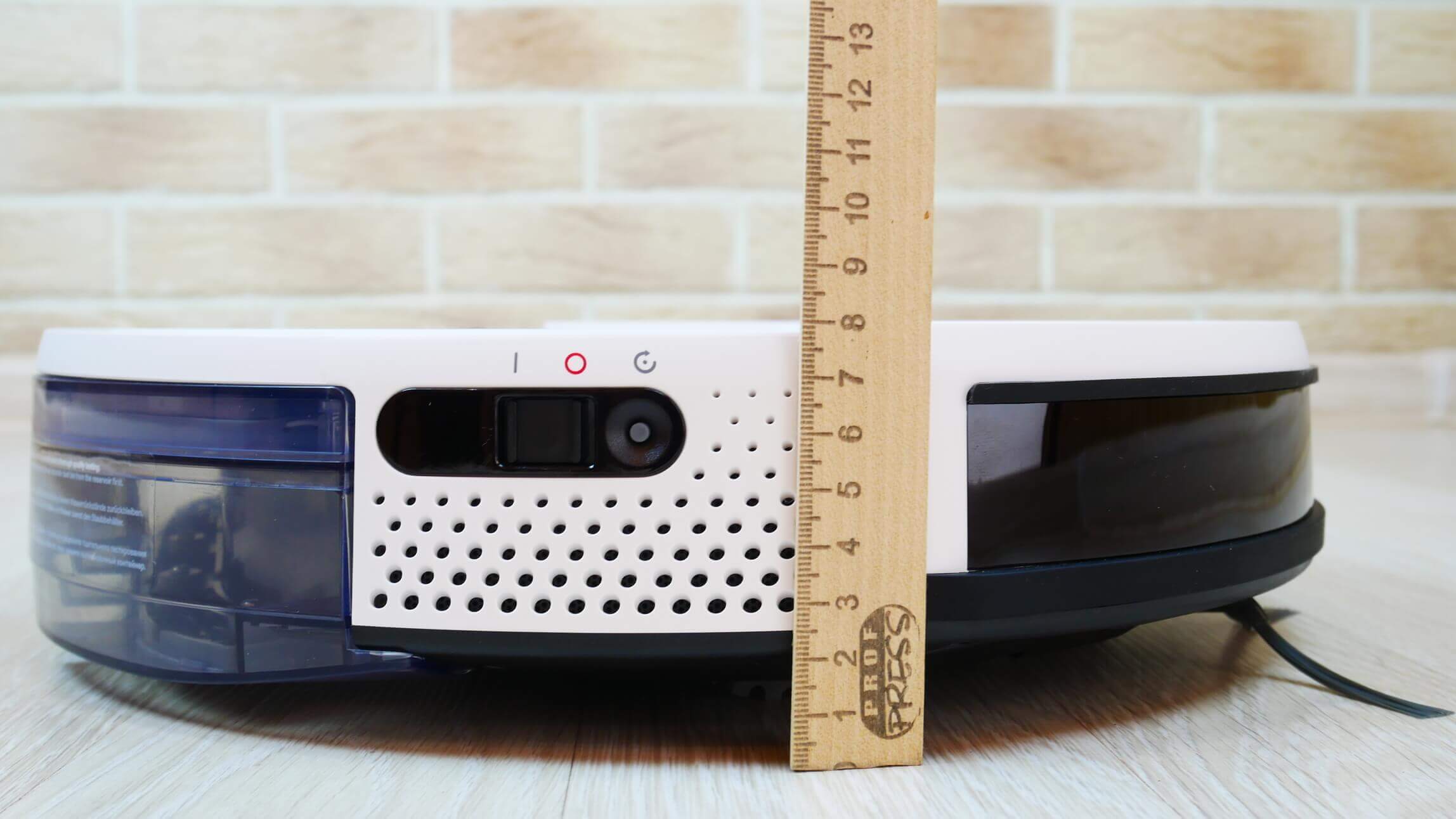 Dabar patikrinkime, kaip gerai šis robotas dulkių siurblys pašalina pridžiūvusius nešvarumus nuo grindų. Pirmiausia pripildėme baką vandens ir sudrėkinome šluostę. Šalinimo našumas yra akivaizdžiai geresnis nei vidutinis. Ant grindjuostės buvo keletas nedidelių dryžių, o stovo centre – minimalių, tačiau į tai neatsižvelgiame, nes nešvarumų buvo tiek daug, kad šluostė tiesiog užsikimšo. Pats šalinimo našumas yra aukštas, o realiomis namų sąlygomis tokių sudėtingų situacijų beveik niekada nebūna. Aš išlaikiau testą.