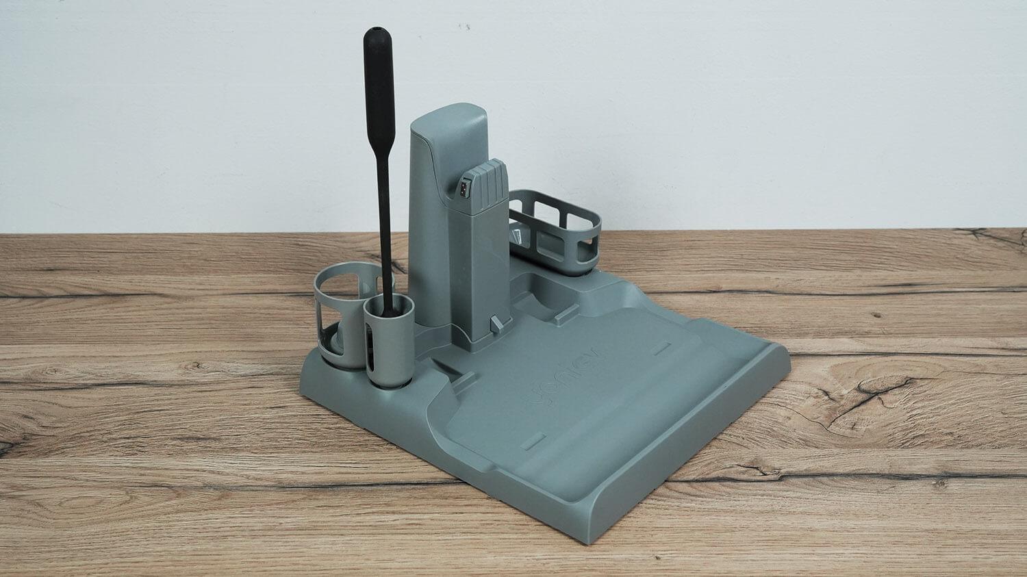 Kalbant apie įkrovimo stotelę, „Yoniev U7s“ įkraunamas ir išsivalomas joje. Volelis neturi automatinio džiovinimo funkcijos po savaiminio išsivalymo.