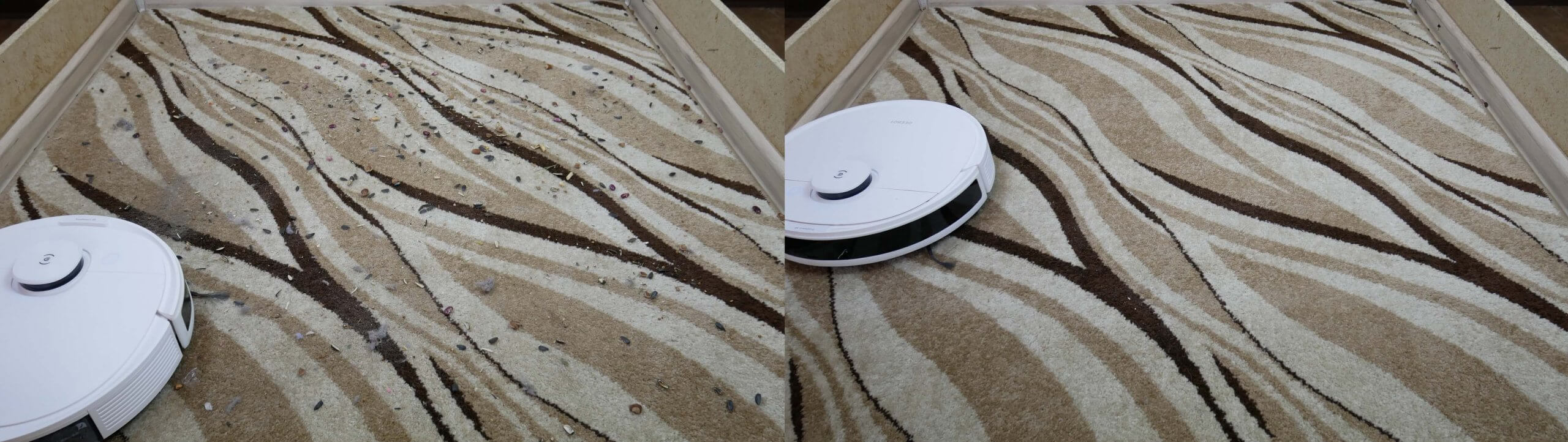 Kilimų valymo rezultatai taip pat puikūs. „Ecovacs Deebot OZMO N8 PRO“ sugebėjo surinkti visas šiukšles, kruopščiai išsiurbdamas kilimą.