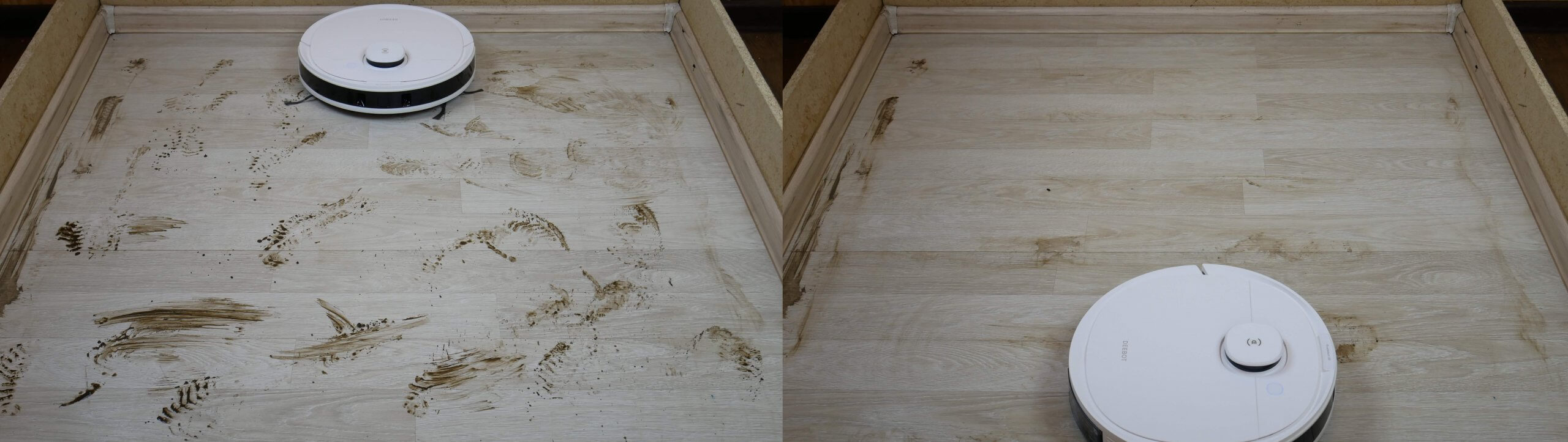 Kalbant apie valymo kokybę, šis modelis kelia tam tikrų abejonių. Jis ne tik paliko gana didelį plotą palei grindjuostę nevalytą, bet ir nepašalino dalies nešvarumų nuo grindų, palikdamas dryžius.