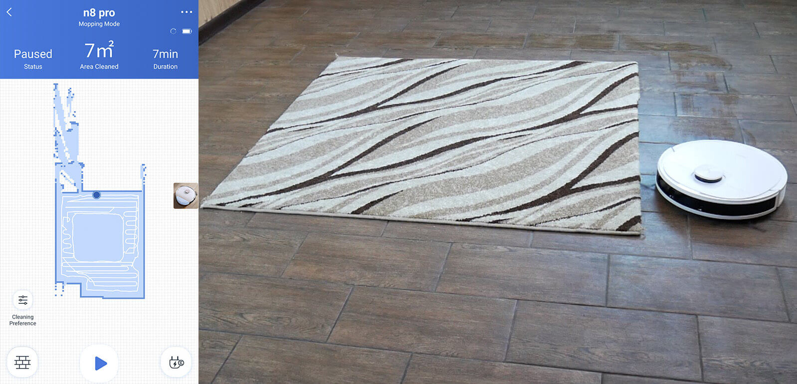 Mano nuostabai, „Ecovacs Deebot OZMO N8 PRO“ sugebėjo aptikti visus objektus ant grindų ir kruopščiai juos apeiti valydamas. Jo jutiklių sistema yra dar geresnė nei „Deebot T9 AIVI“, kuriame yra aktyvi kamera ir dirbtinis intelektas. Tai didelis supaprastintos versijos pliusas!
