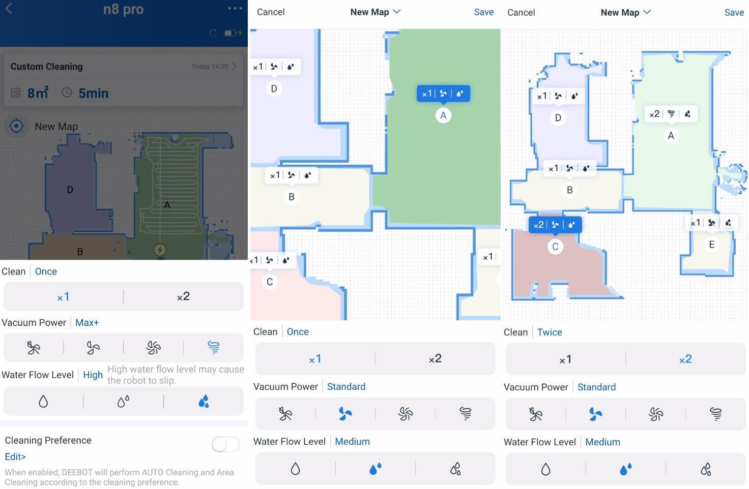 - Atstatykite sukurtą žemėlapį. Beje, „Ecovacs Deebot OZMO N8 PRO“ gali saugoti kelis unikalius valymo žemėlapius, o tai yra privalumas.