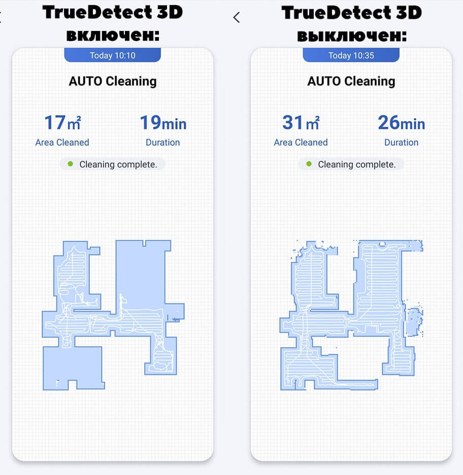 Kalbant apie navigaciją namuose, robotas dulkių siurblys susidūrė su pagrindine daugelio objektų aptikimo sistemų problema. Jutikliai aptinka kilimą kaip kliūtį, todėl robotas jo vengia. Kartais jam pavyksta užlipti ant kilimo, tačiau tai nutinka retai, todėl, įjungus 3D jutiklį, robotas negali valyti kilimų. Į tai labai svarbu atsižvelgti. Tačiau jei „TrueDetect 3D“ sistema išjungta, robotas dulkių siurblys elgiasi kaip standartinis lidaro robotas. Tokiu atveju jis gerai naviguoja ir be problemų užlipa ant kilimų.
