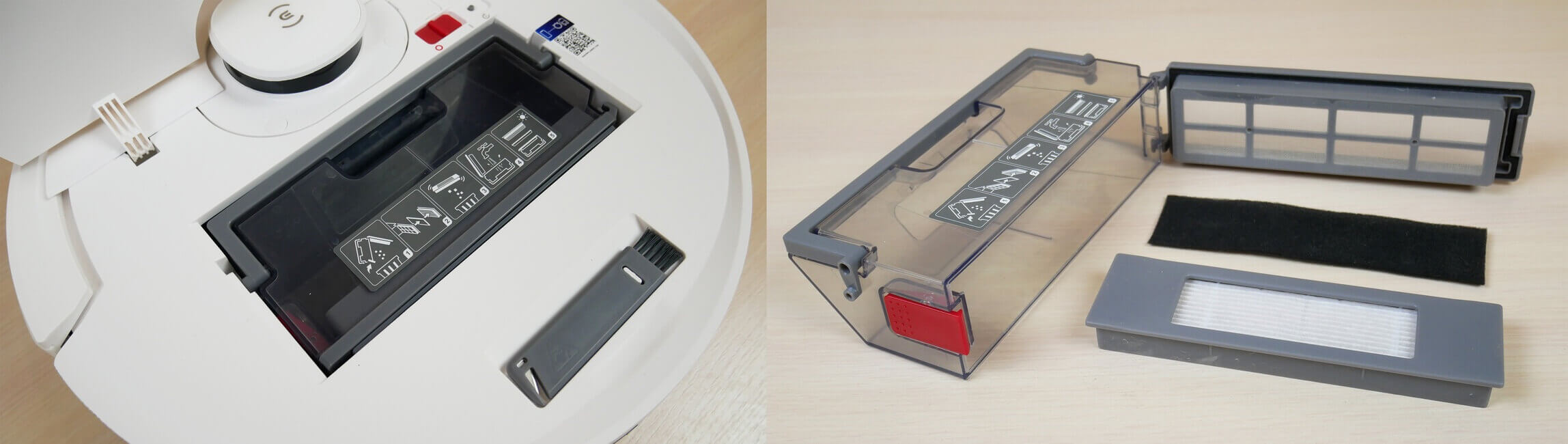 Lidaras turi spyruoklinį dangtelį, kuris neleidžia robotui dulkių siurbliui įstrigti po baldais. Netoliese yra vienas valdymo mygtukas (paleidimas / pristabdymas). Dulkių konteineris yra po viršutiniu dangteliu. Čia taip pat yra roboto įjungimo / išjungimo mygtukas, „Wi-Fi“ atstatymo mygtukas, QR kodas prisijungimui prie tinklo ir priežiūros įrankis.