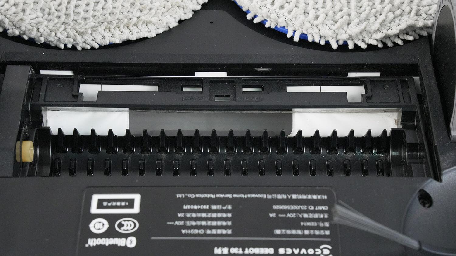 Roboto apačioje yra keturi apsaugos nuo kritimo jutikliai ir kilimo jutiklis šalia besisukančio volelio. Keista, bet šoninis šepetys yra tik vienas. Net „Ecovacs“ susitaikė su tuo, kad antras šoninis šepetys iš tikrųjų nėra būtinas. Pavyzdžiui, anksčiau išleistas „Ecovacs Deebot T20 Pro“ ir... X1 Omni Buvo du šoniniai šepečiai, kurie pritraukė daug žmonių.