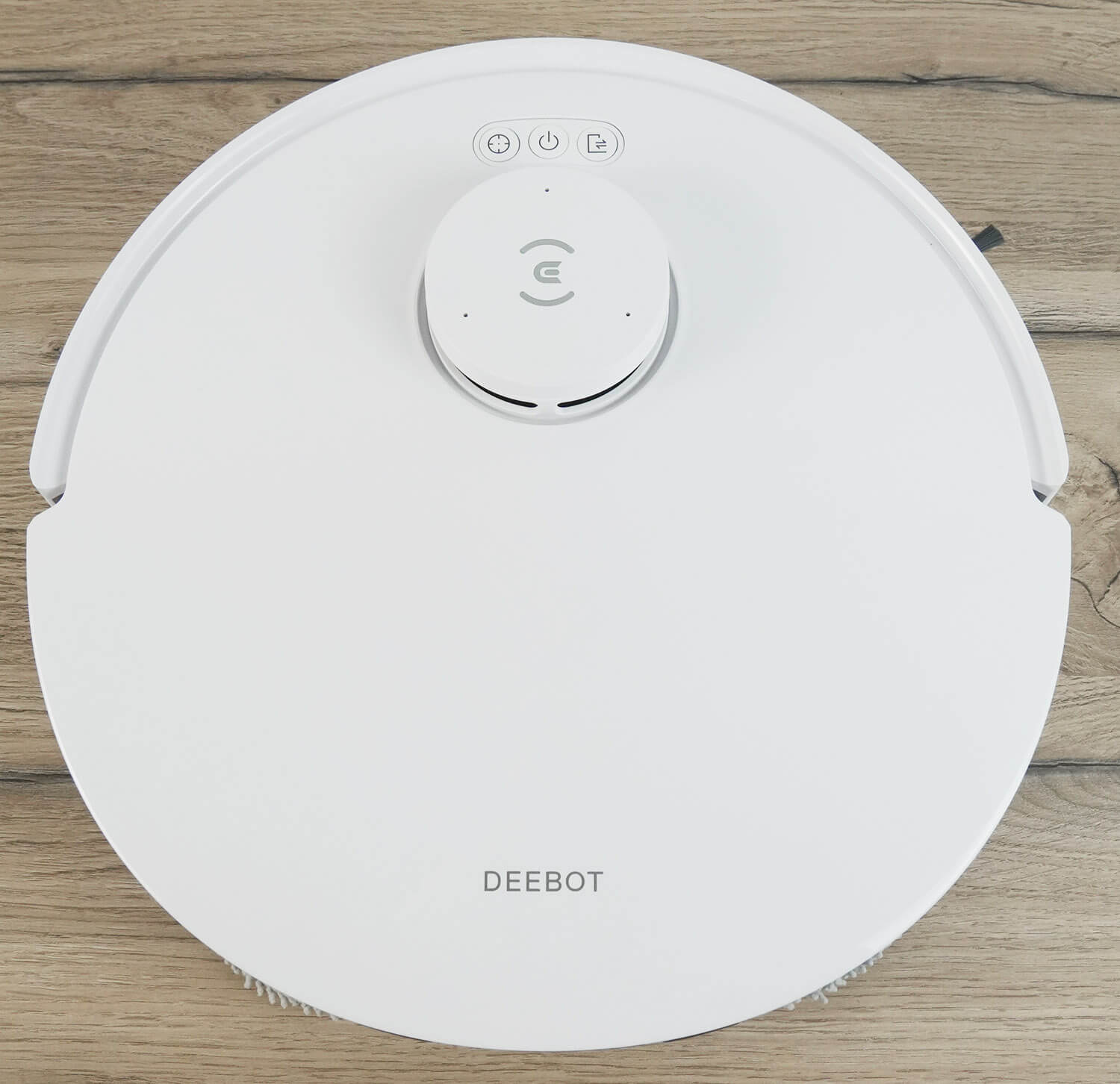 Dabar pažvelkime į „Ecovacs Deebot T30 Pro“ dizainą. Robotas yra apvalus ir baltos spalvos. Nurodytas aukštis nuo grindų yra 104 mm, nors iš tikrųjų jis yra apie 102 mm.