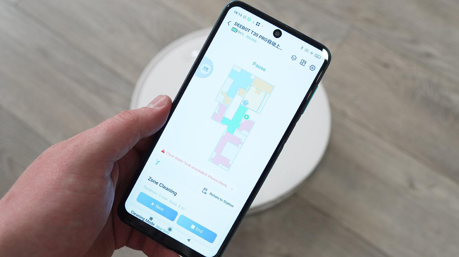 Kalbant apie „Ecovacs Deebot T30 Pro“ funkcijas, robotas dulkių siurblys valdomas per patentuotą mobiliąją programėlę „Ecovacs Home“. Kadangi ši versija skirta Kinijos rinkai, prisijungimui reikalingas Kinijos telefono numeris. Pardavėjas turi suteikti visas prieigos teises.