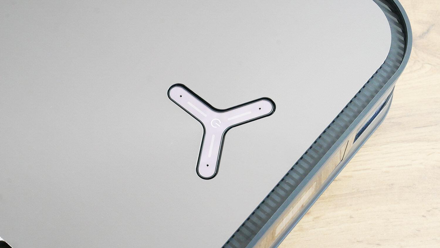 Korpuso viršuje yra Y formos skydelis su jutikliniu mygtuku valymo procesui paleisti / sustabdyti, taip pat garsiakalbiai, kurie valdo integruotą YIKO prekės ženklo asistentą.