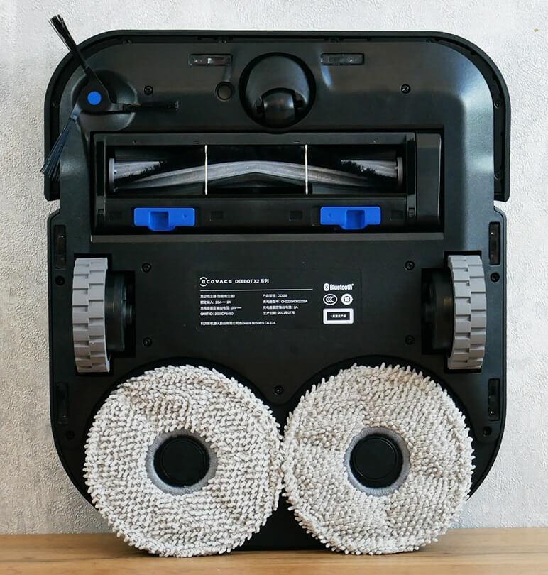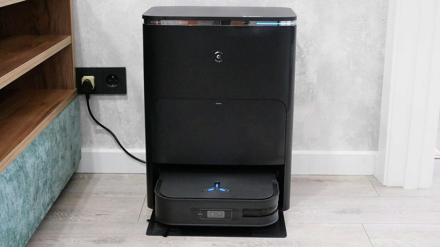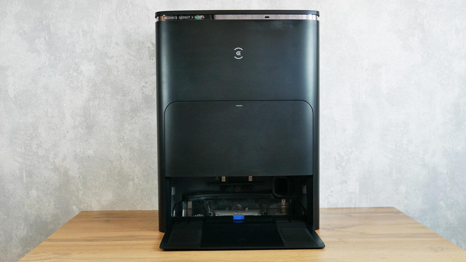Kalbant apie stotelę, „Ecovacs Deebot X2 Pro“ pats išvalo dulkių konteinerį, išplauna šluostes karštu vandeniu ir išdžiovina jas šiltu oru.