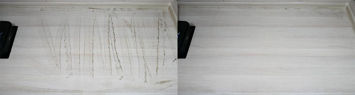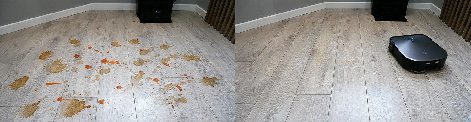 Taip pat labai džiaugiausi, kad, kaip ir jo pirmtakai, jis gali pašalinti net sunkiausias dėmes, pavyzdžiui, mano atveju – pridžiūvusias kavos ir padažo dėmes. Šio roboto valytuvai stipriau spaudžia grindis nei panašūs aparatai su tais pačiais valytuvais, todėl šlapias valymas yra efektyvesnis.