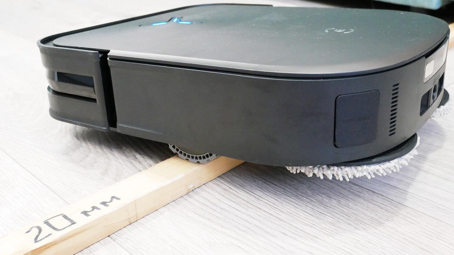 Kaip ir tikėtasi, palei grindjuostę lieka siaura akloji zona, nes valymo pagalvėlės nesiekia įrenginio krašto ir pašalintas grindjuostės valymo režimas. Naudojant „Ecovacs Deebot X2 Pro“, akloji zona yra vos mažiau nei 3 cm pločio.
