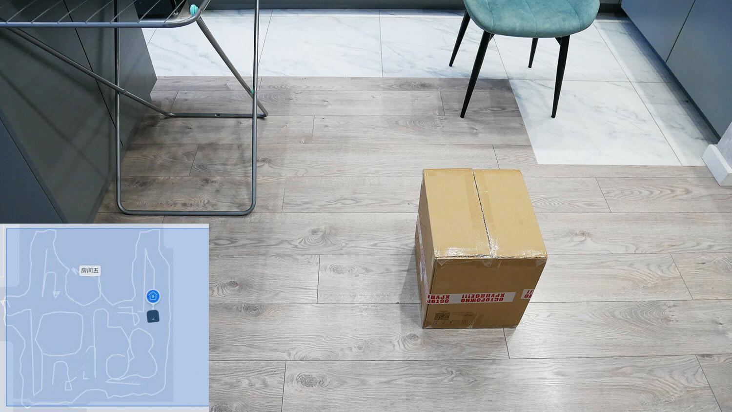Galiausiai pereikime prie bandymų. Pirmiausia išbandysime „Ecovacs Deebot X2 Pro“ navigaciją kambaryje su kliūtimis. Robotas dulkių siurblys pirmiausia apvažiuoja kambario perimetrą, tada išvalo visą prieinamą plotą gyvatės formos trajektorija. Džiovyklės kojelės nesukėlė jokių didelių problemų; ji apeidavo vieną kliūtį ir perbėgo ją. Ji taip pat apšlavė dėžę ir kėdės kojas, o tada grįžo į savo stotelę.