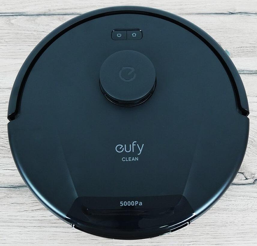 Dabar pažvelkime į „eufy L60“ dizainą. Pradėkime nuo paties roboto dulkių siurblio. Jis apvalus ir juodos spalvos.
