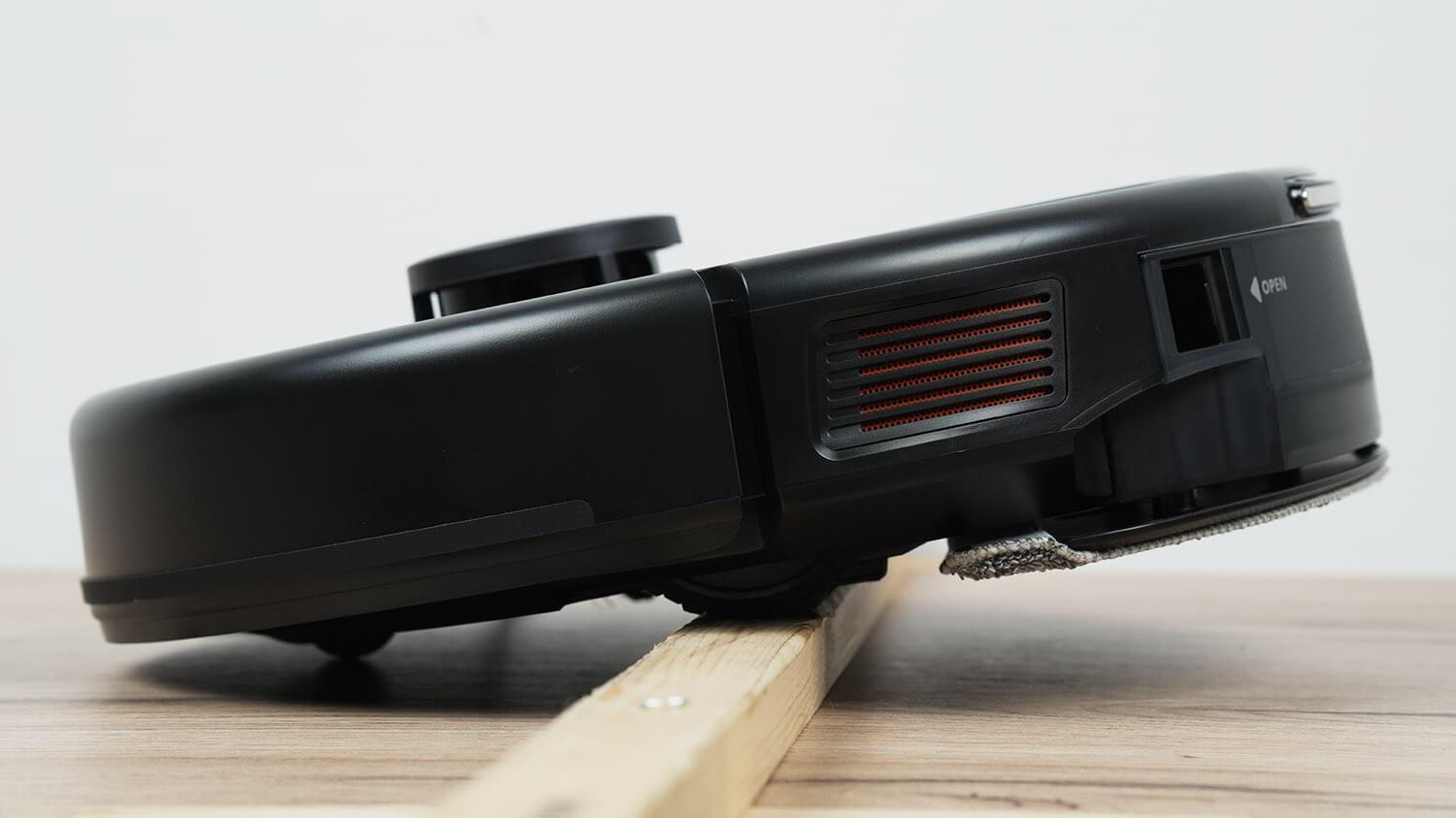 Tačiau siurbimo galia pasirodė esanti gana vidutinė. Robotas dulkių siurblys sugebėjo išsiurbti šiukšles tik iš 2 mm tarpo. Tai greičiausiai lemia neplūdrus centrinis šepetys, todėl jis ne taip tvirtai prilimpa prie grindų.