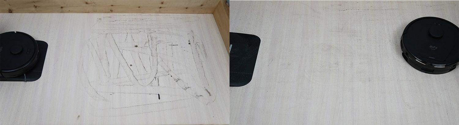 „eufy L60“ šlapio valymo našumas, vertinant pagal šiandienos standartus, palieka daug norimų rezultatų. Robotas negali susidoroti net su paprasčiausiomis dėmėmis, tokiomis kaip pridžiūvę purvas, o stotelėje nėra valymo šluostės funkcijos. Jis labiau skirtas lengvam grindų valymui. Šluostė padeda pašalinti smulkias dulkes, kurių turbo šepetys gali nepastebėti.