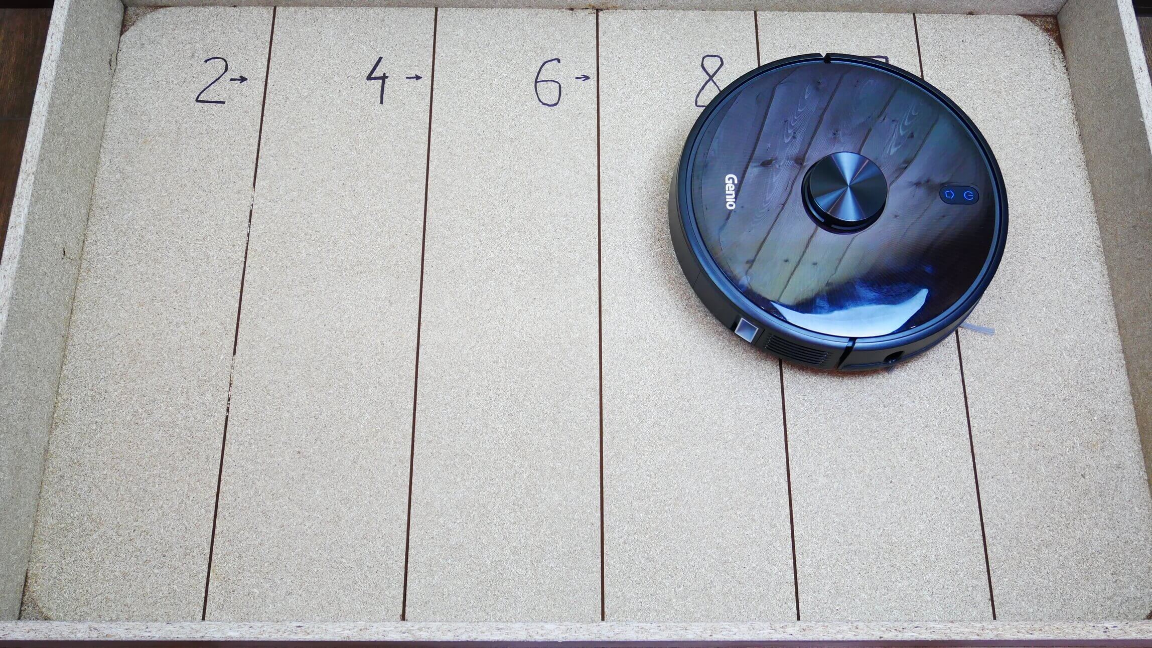 Daug įdomiau išbandyti, kaip gerai „Genio Laser L800“ susiurbia šiukšles iš įvairaus gylio plyšių.