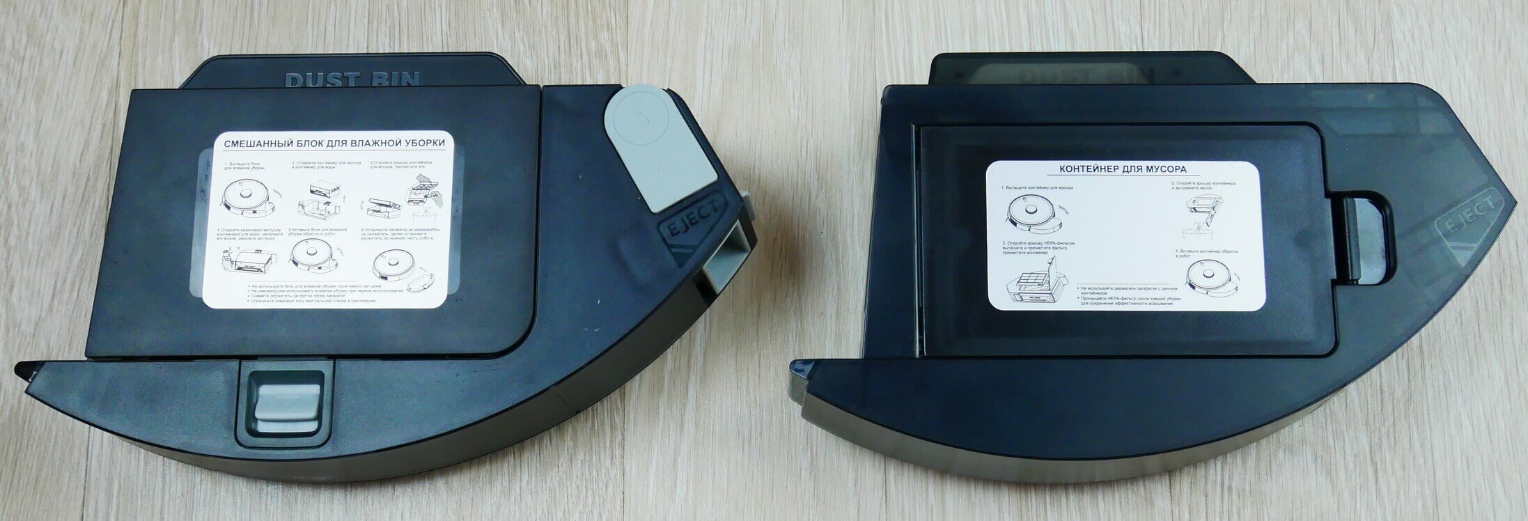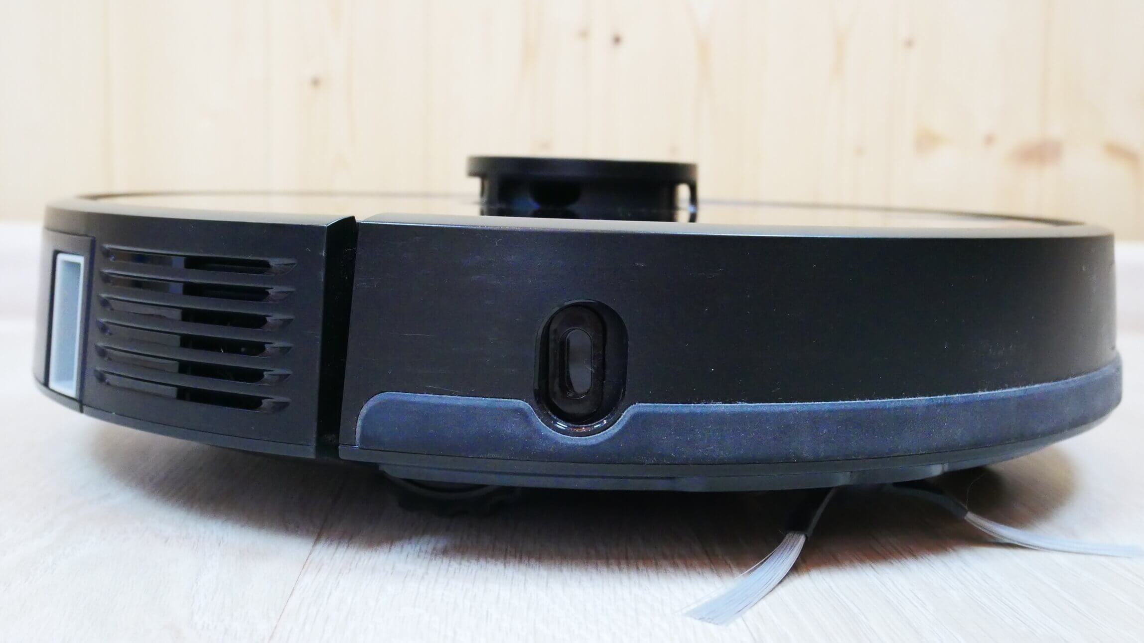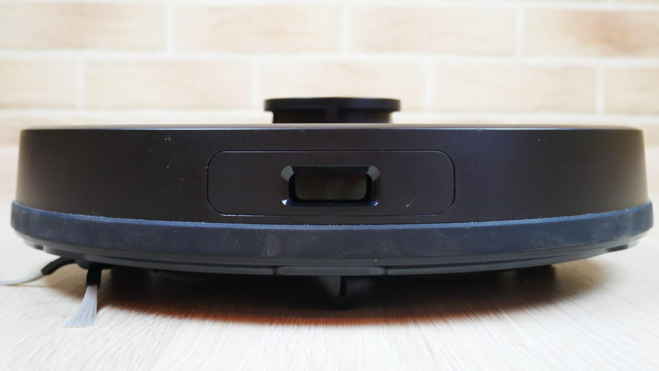 Svarbu atkreipti dėmesį, kad lidaras turi mechaninį mygtuką, kuris neleidžia jam įstrigti po baldais. Atliekų konteineris išstumiamas paspaudus mygtuką. Dizainas ir išdėstymas labai panašūs į sprendimą. „iRobot Roomba i7+“Jis suprojektuotas panašiu būdu.