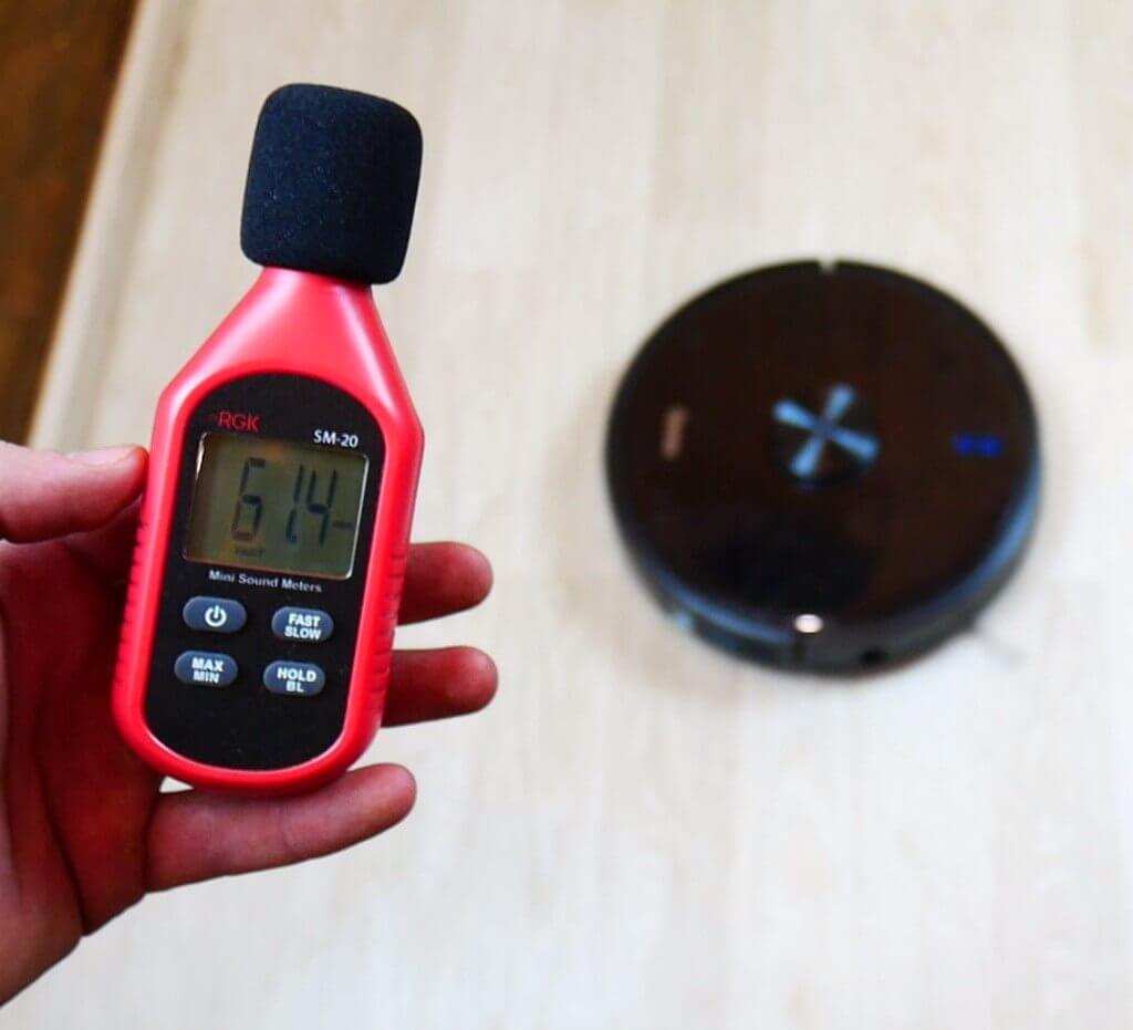 Galiausiai išmatuokime triukšmo lygį. Esant minimaliai galiai, triukšmo lygis svyravo nuo 60 iki 63 dB. Įprastu režimu jis siekė 65 dB, o esant maksimaliai galiai – 68 dB. Apskritai „Genio Laser L800“ nėra labai triukšmingas.