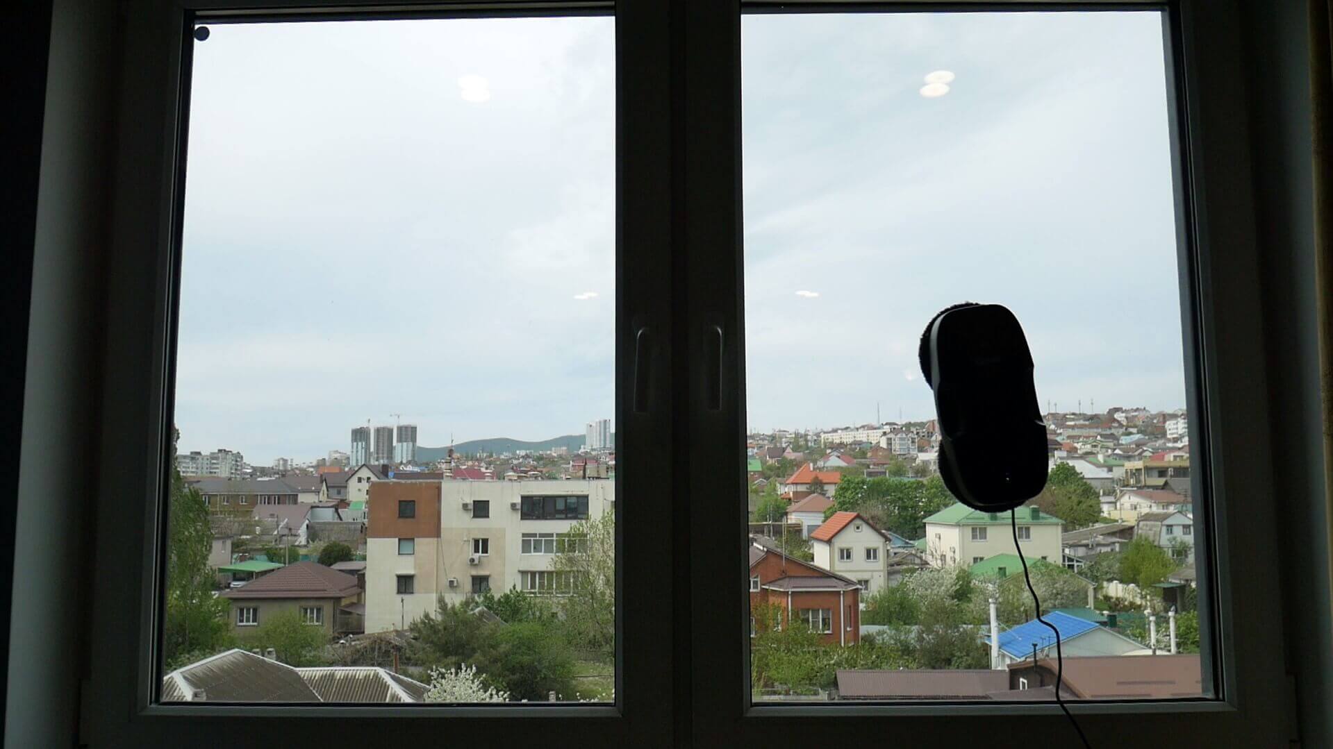 Galiausiai pakalbėsiu apie avarinį režimą dingus elektrai. Jei jūsų bute dingsta elektra arba netyčia užkliuvote už laido ir ištraukėte kištuką, robotas gali veikti avariniu režimu iki 20 minučių. Šiuo laikotarpiu jis pyptels, o indikatoriaus lemputė mirksės raudonai. Tai leis jums greitai aptikti problemą ir nuimti robotą nuo lango.