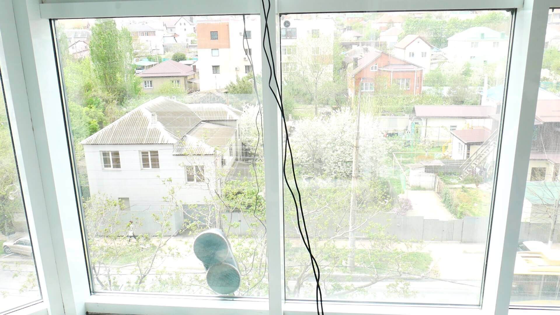Robotą taip pat dislokavome vienoje iš įstiklinto balkono aklųjų angų. Jo efektyvumą galima aiškiai palyginti su gretimos, nešvarios angos efektyvumu.