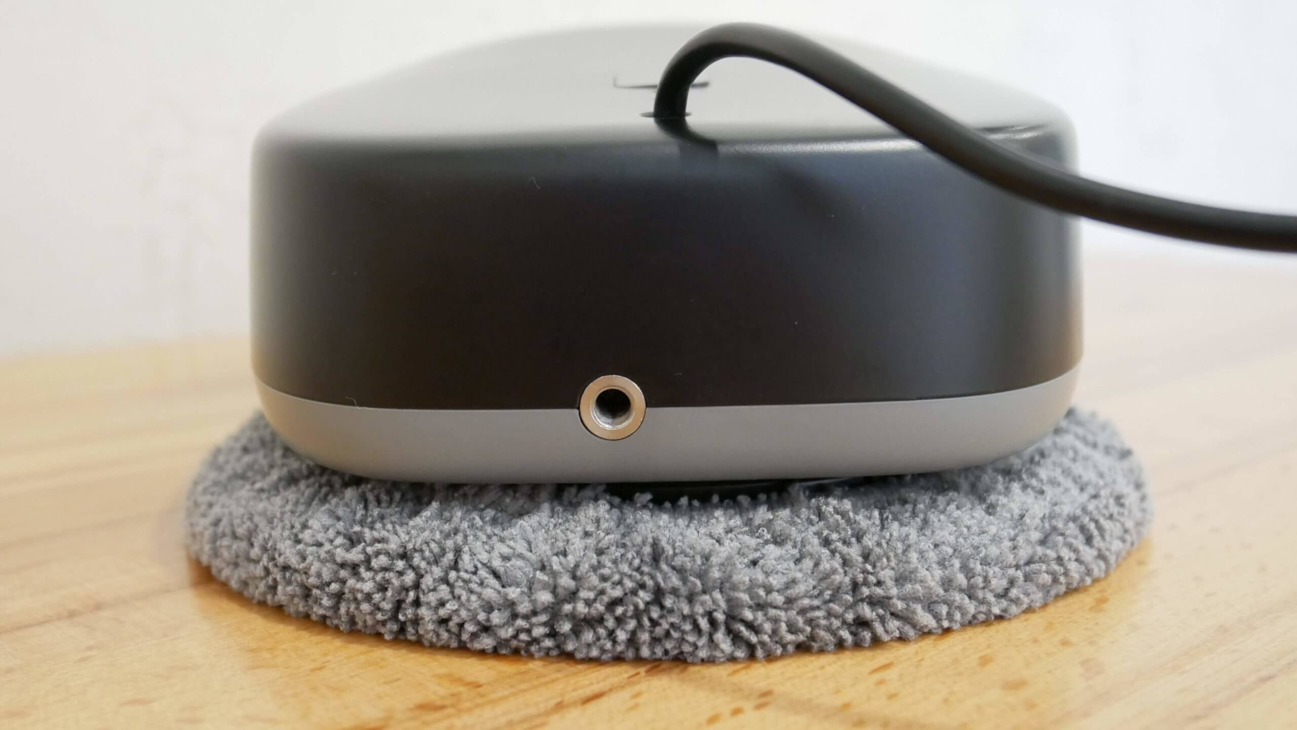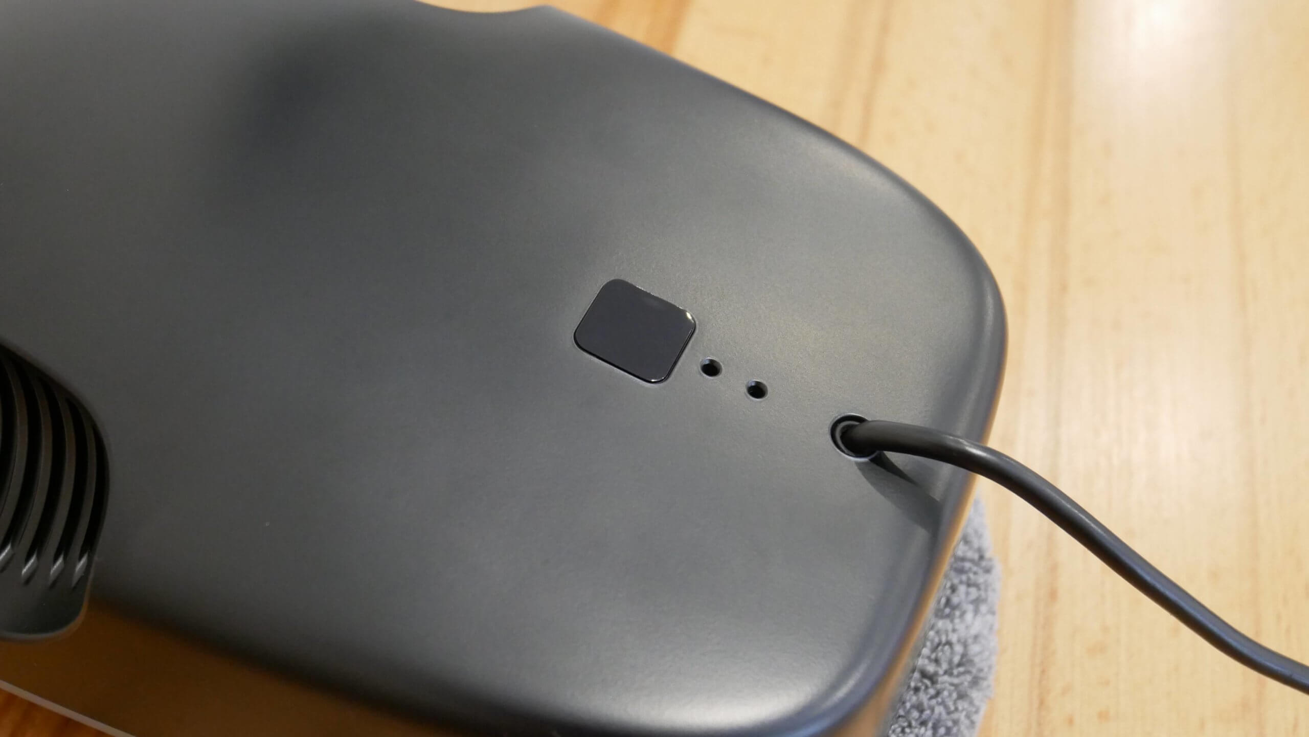 Be to, roboto būsenos indikatoriai yra korpuso viršuje. Šalia jų galite matyti prijungtą laidą, kurio negalima atskirti nuo roboto.