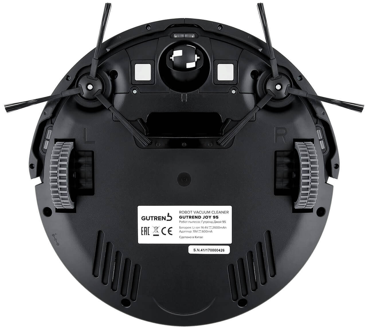 Apačioje sumontuoti du pagrindiniai ratai ir vienas priekinis ratas, leidžiantis įrenginiui pasisukti ir keisti kryptį. Abiejose besisukančio rato pusėse yra automatinio įkrovimo gnybtai ir du šoniniai šepečiai. Už rato yra siurbimo anga šiukšlėms surinkti. Baterijų skyriaus dangtelis taip pat yra įrenginio apačioje.