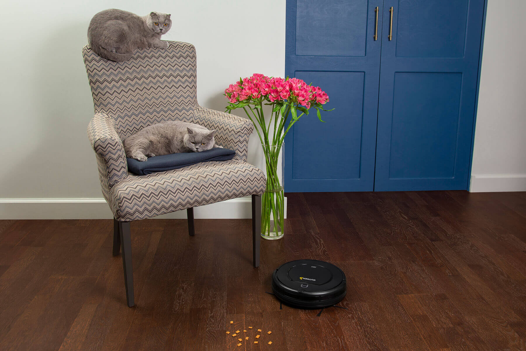 - Dėl kompaktiško dydžio robotas dulkių siurblys gali prasiskverbti po žemais baldais.