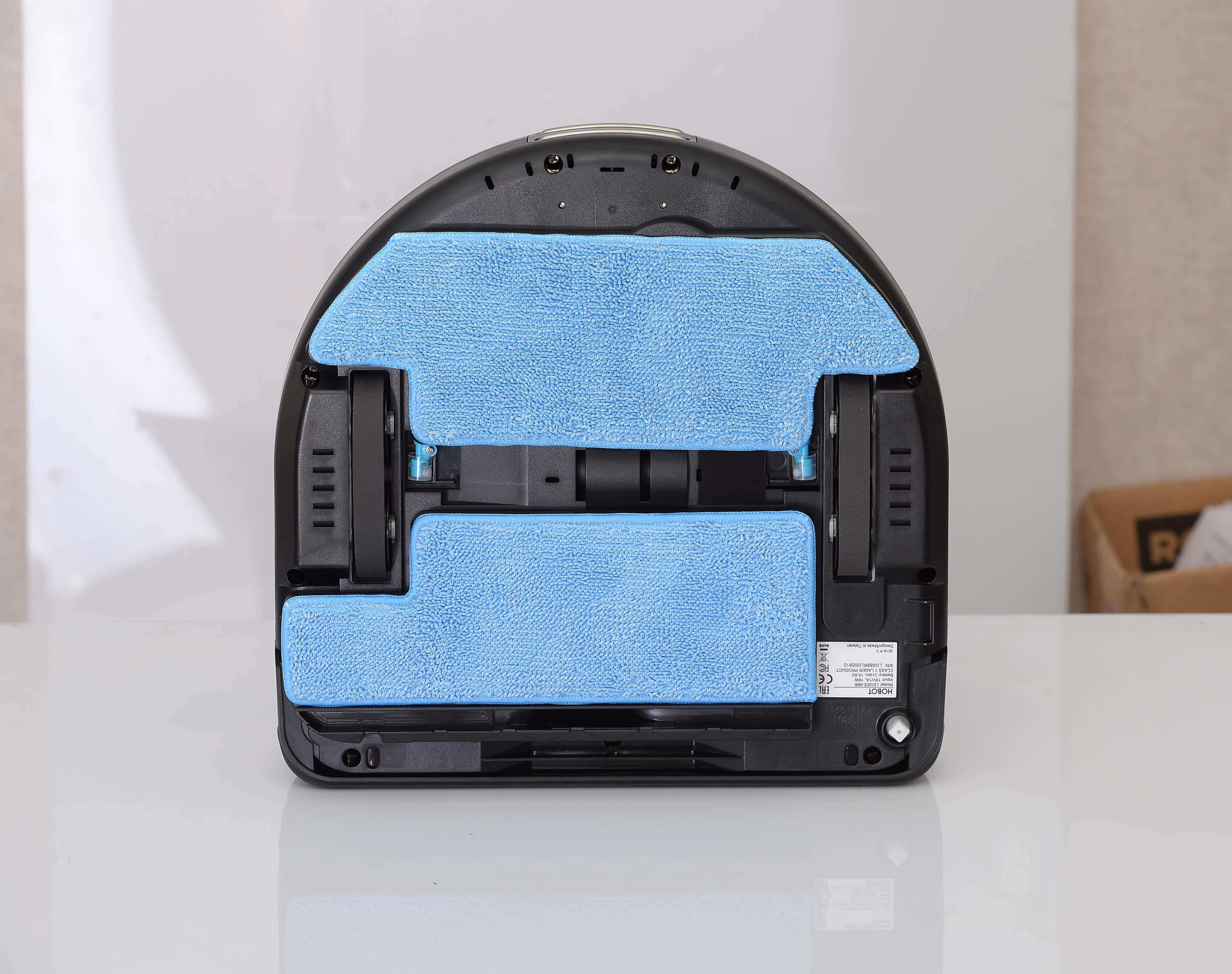 Apvertus robotą paaiškėja, kad jis juda vikšrais, o ne ratais, kaip daugelis kitų modelių. Didesnis sukibimo plotas užtikrina neslystančias savybes net ant šlapių, blizgių grindų. „Hobot Legee-688“ apačioje yra du judantys blokeliai, kuriuose laikomos mikropluošto pagalvėlės. Tarp šių blokelių yra antgaliai, kurie purškia skystį šluostant. „Hobot Legee-688“ turi tik vieną šoninį šepetėlį, tačiau jo pakanka efektyviam valymui kampuose ir palei sienas.