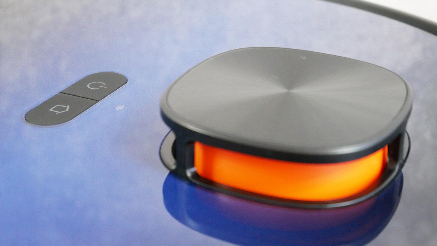 Navigaciją užtikrina lidaro jutiklis. Spyruoklinio lidaro dangtelio nėra. Valdymo skydelyje yra du mechaniniai mygtukai ir „Wi-Fi“ ryšio indikatorius.