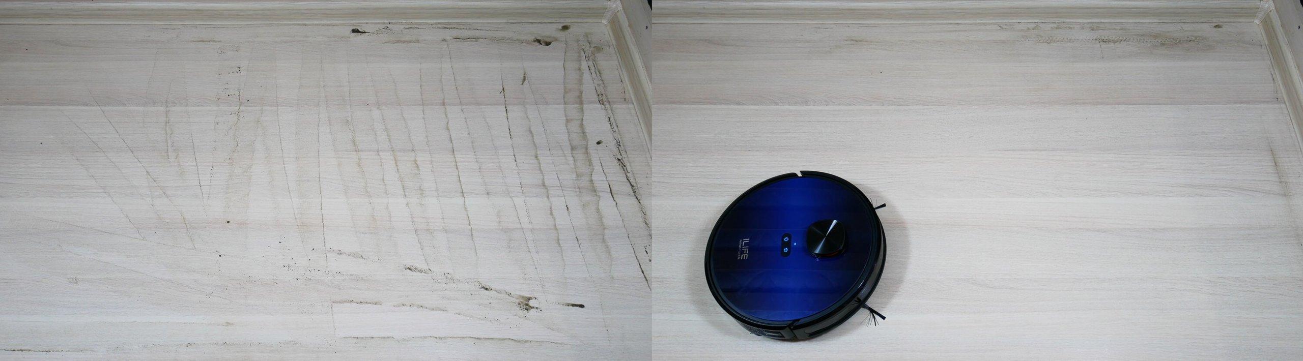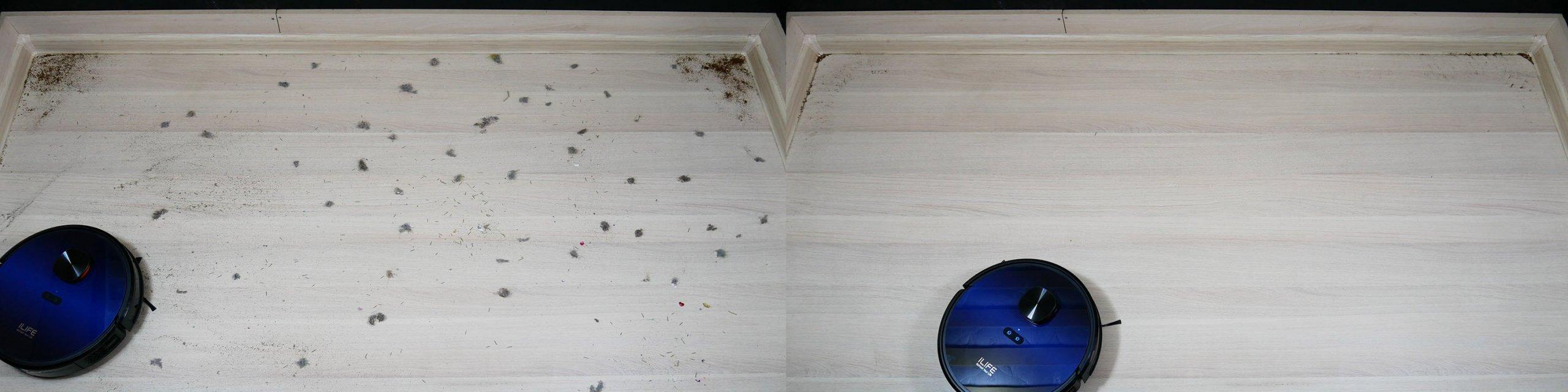 „iLIFE T10“ robotai susidorojo su nedideliu nešvarumų ir purvo pašalinimu. Liko tik siaura, neplauta vieta palei grindjuostę – tai buvo silpnoji visų tirtų robotų vieta. Testas sėkmingas!