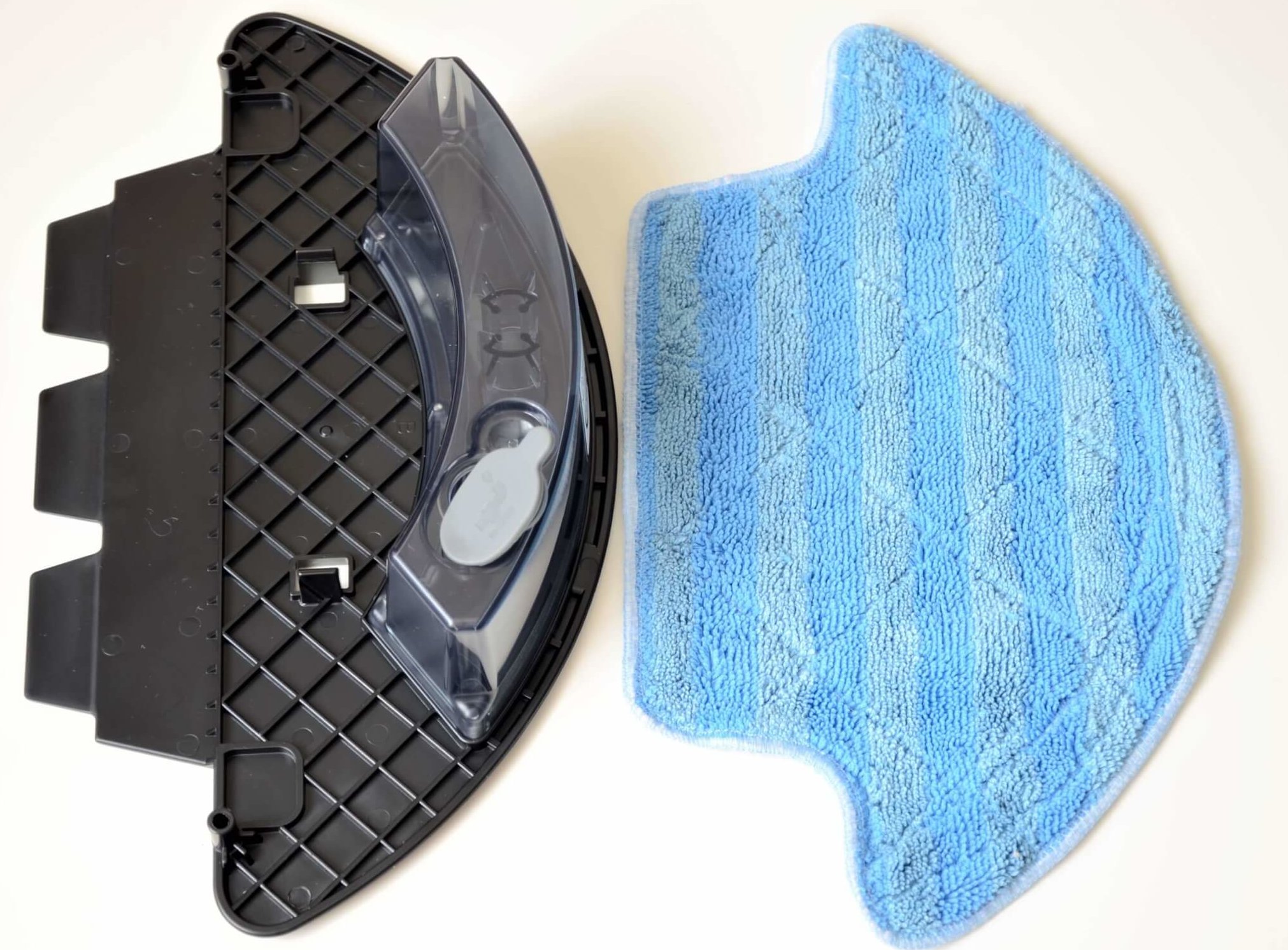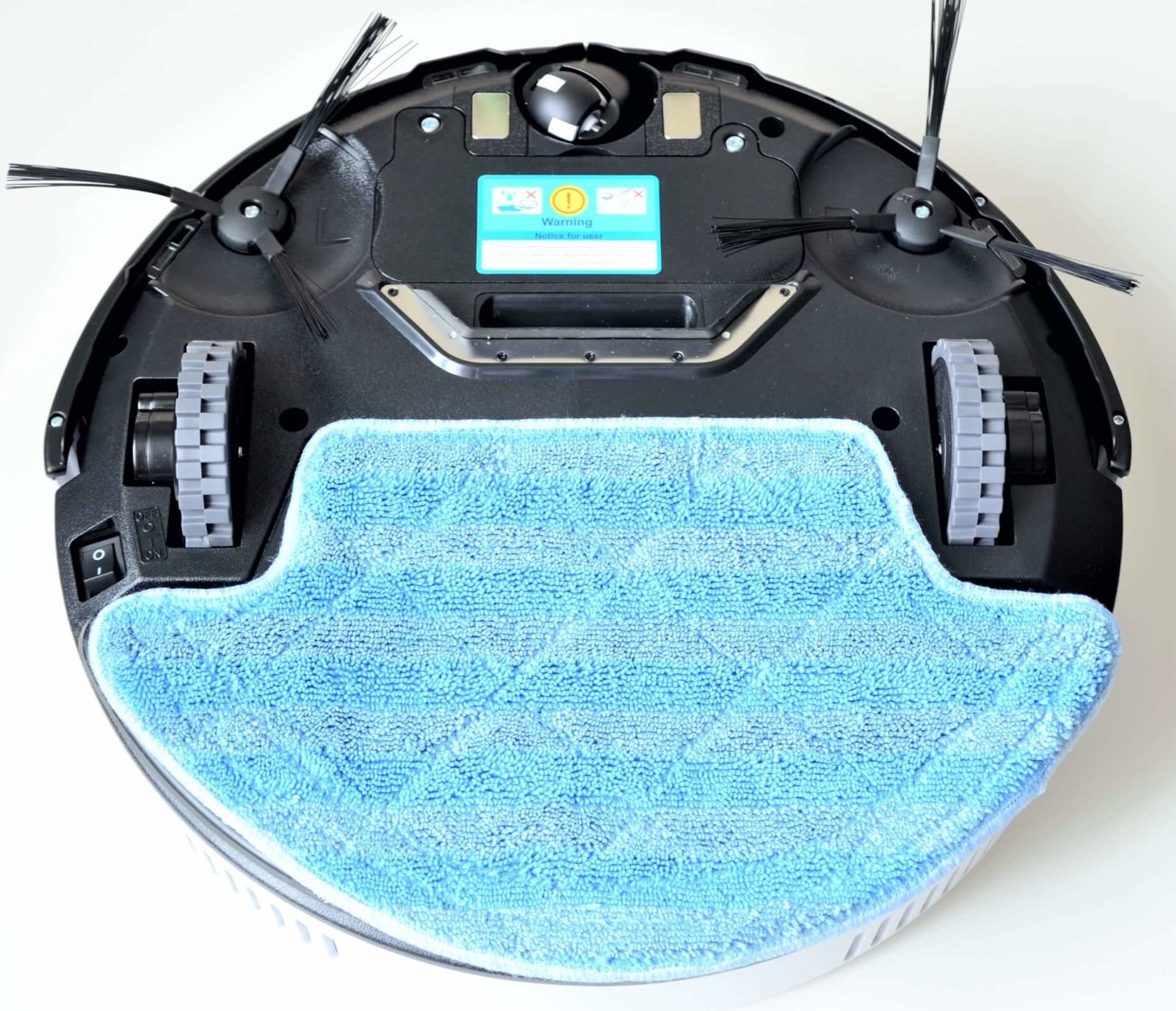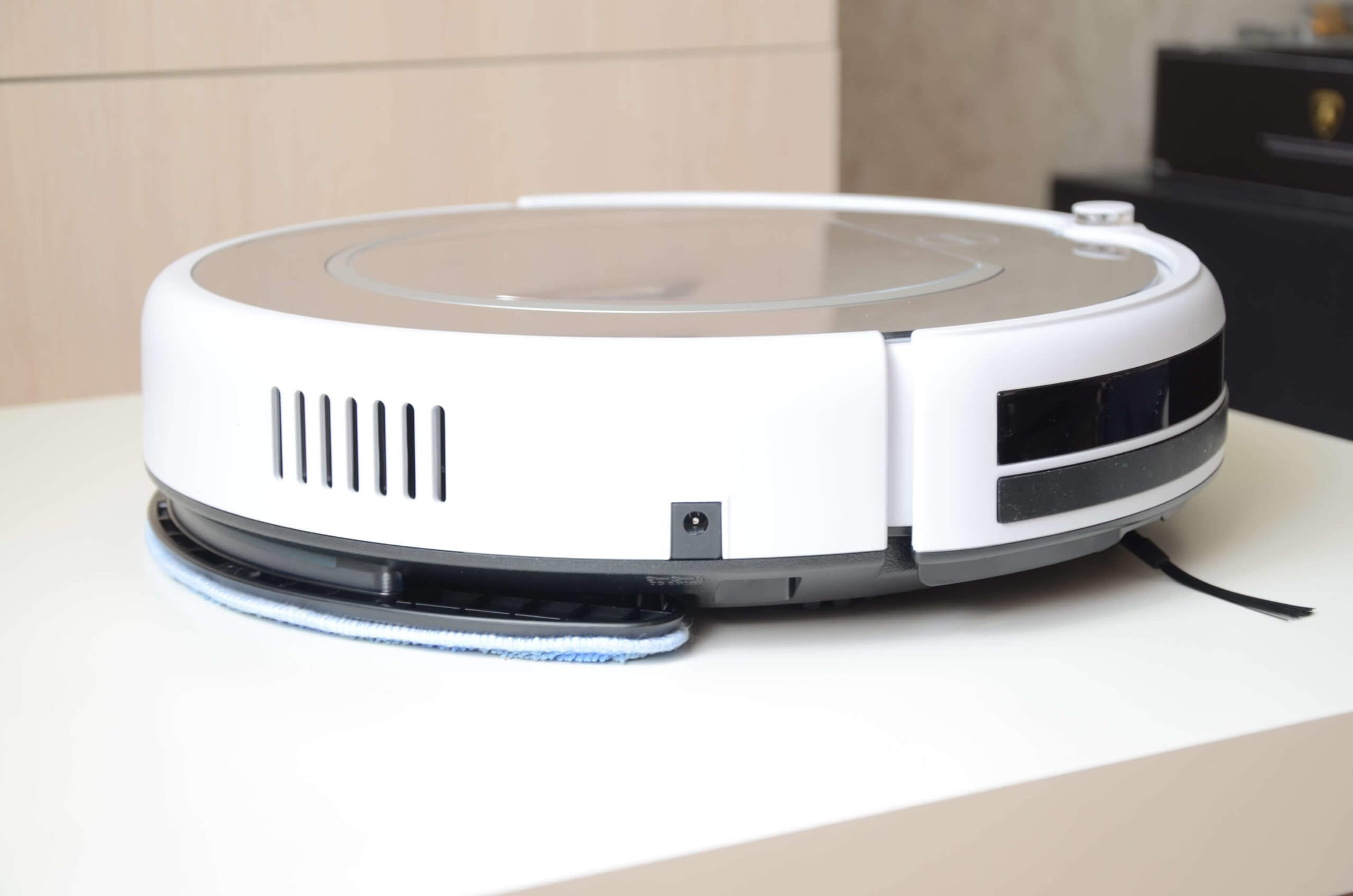 Roboto apačioje yra pasukamas volelis, du šoniniai šepečiai, pagrindiniai ratai ir siurbimo anga. Robotas taip pat yra iš anksto sumontuotas su drėgnu skudurėliu.