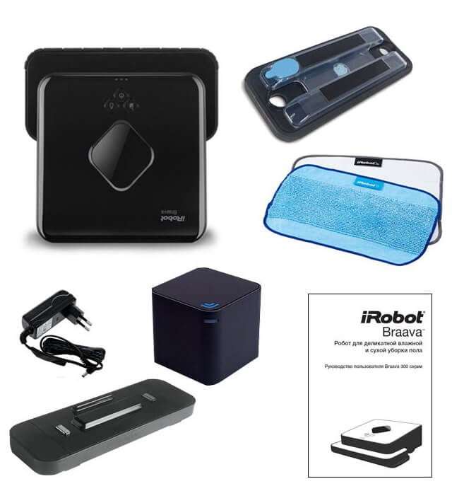 „iRobot Braava 380T“ robotas yra pilnai sukomplektuotas. Be paties roboto dulkių siurblio, pakuotėje yra: